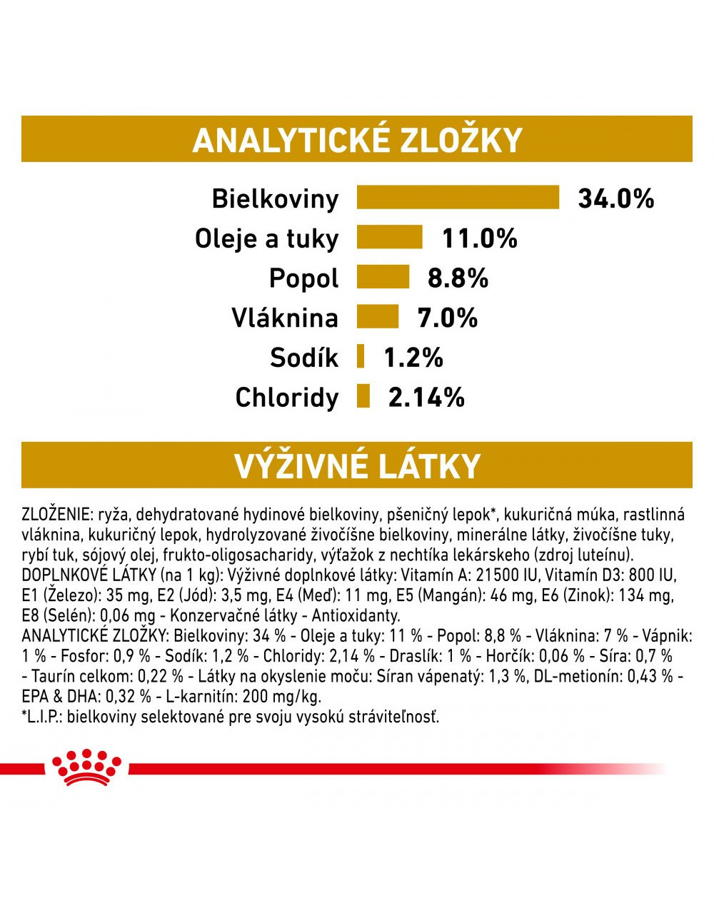 ryža, pšeničný glutén (L.I.P. – proteín vybraný pre svoju vysokú