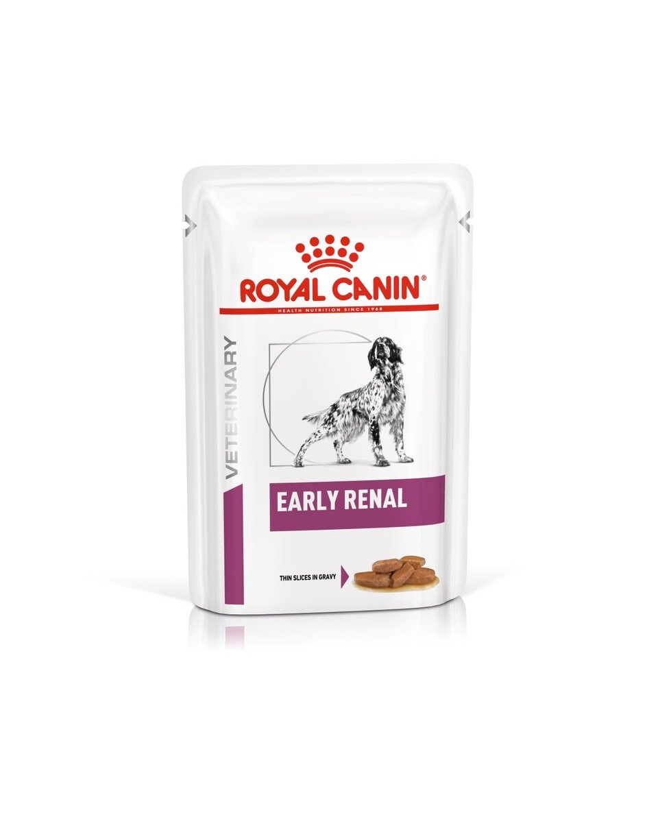 ROYAL CANIN® EARLY RENAL tenké kúsky v šťave je kompletné dietne krmivo pre psy formulované na podporu obličkovej funkcie v prípadoch chronickej renálnej nedostatočnosti vďaka zníženému obsahu fosforu a bielkovín vysokej kvality.