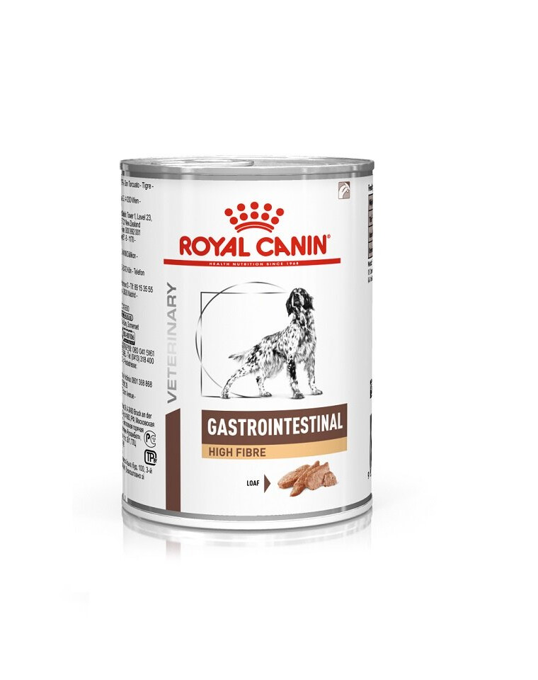 Paštéta ROYAL CANIN GASTROINTESTINAL HIGH FIBRE je kompletné diétne krmivo pre psov vyvinuté na kompenzáciu porúch trávenia. Vysoko stráviteľné krmivo.