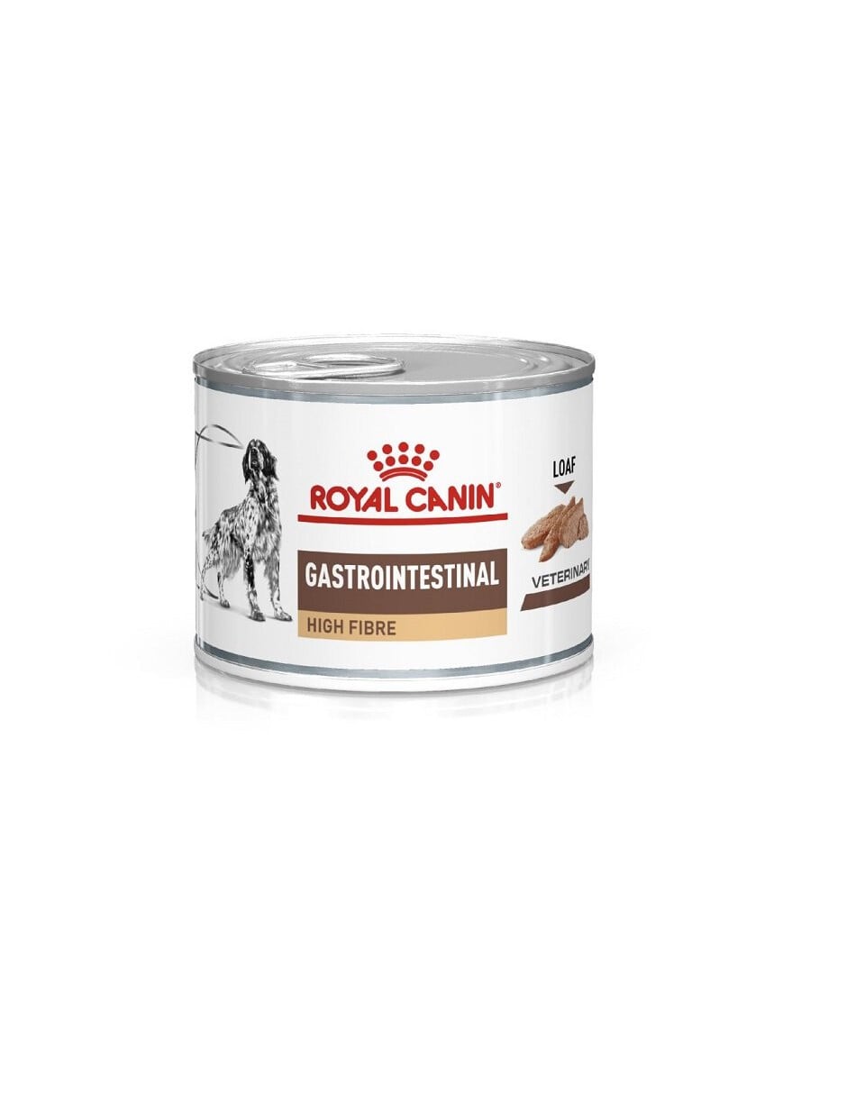 Paštéta ROYAL CANIN GASTROINTESTINAL HIGH FIBRE je kompletné diétne krmivo pre psov vyvinuté na kompenzáciu porúch trávenia. Vysoko stráviteľné krmivo.