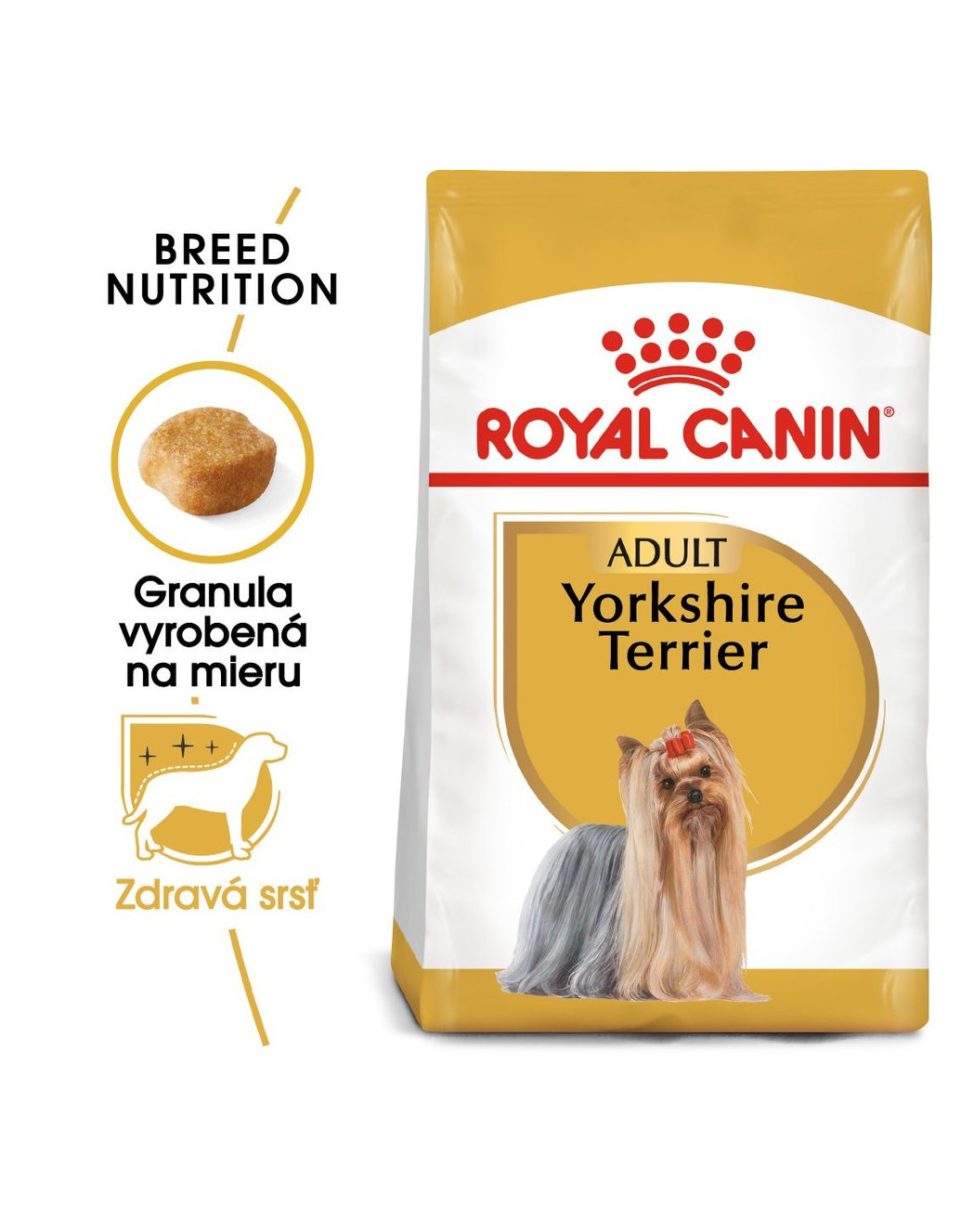 Jorkšírske teriéry sú prirodzene pokojné, aktívne a inteligentné psy plné energie a chuti do jedla. Pretože má každé plemeno jedinečné potreby, rad krmív ROYAL CANIN® Breed Health Nutrition uspokojuje nutričné potreby a udržuje zdravie psov rôznych plemien. Zloženie krmiva ROYAL CANIN® Yorkshire Terrier Adult je vytvorené tak, aby uspokojilo všetky nutričné potreby dospelých jorkšírskych teriérov starších ako 10 mesiacov.