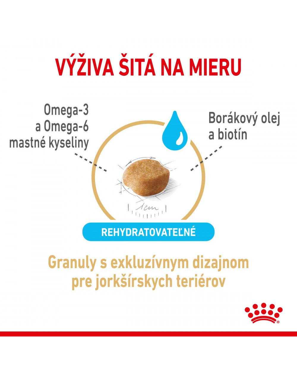 mastné kyseliny, brutnákový olej a biotín. ROYAL CANIN® Yorkshire Terrier Adult