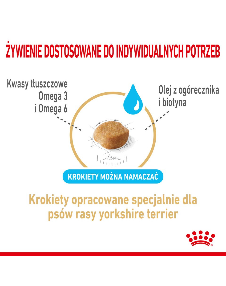 ROYAL CANIN® Yorkshire Terrier Adult 8+ prispieva k udržaniu zdravia ich srsti prostredníctvom prispôsobeného obsahu obohateného o esenciálne omega-3 mastné kyseliny (EPA a DHA), omega-6 mastné kyseliny, brutnákový olej a biotín. ROYAL CANIN® Yorkshire Terrier Adult 8+ obsahuje exkluzívnu kombináciu antioxidantov, ktoré pomáhajú udržiavať zdravie buniek, a je formulovaný s upraveným obsahom fosforu pre starostlivosť o zdravie obličiek Yorkšírskych Teriérov v dospelosti.