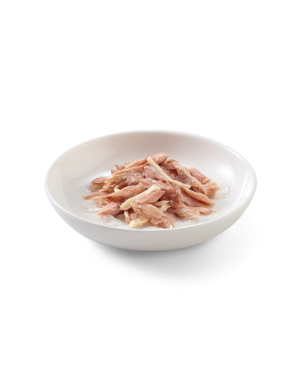 Pravé filety z tuniaka dusené s kuracím mäsom v želé – prirodzená a neodolateľná kombinácia.