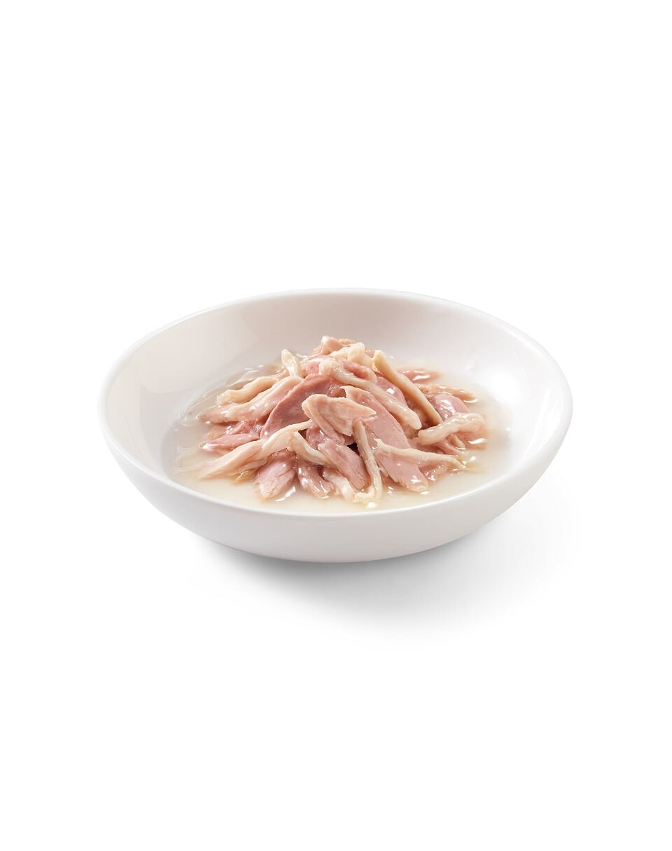 Toto vynikajúce krmivo bolo vytvorené pre mačky, ktoré si cenia jednoduchosť a kvalitu. Pravé filety z tuniaka v kombinácii s kuracím mäsom sa varia v pare a podávajú sa v chutnom vývare, ktorý podporuje prirodzenú hydratáciu tela. Recept je založený výhradne na niekoľkých starostlivo vybraných prírodných ingredienciách, bez pridania konzervantov, umelých farbív alebo zvýrazňovačov chuti.