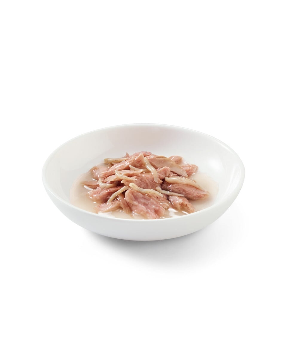 Zloženie: tuniak 55%, ryža 1,5%, rafinovaný slnečnicový olej, minerály.