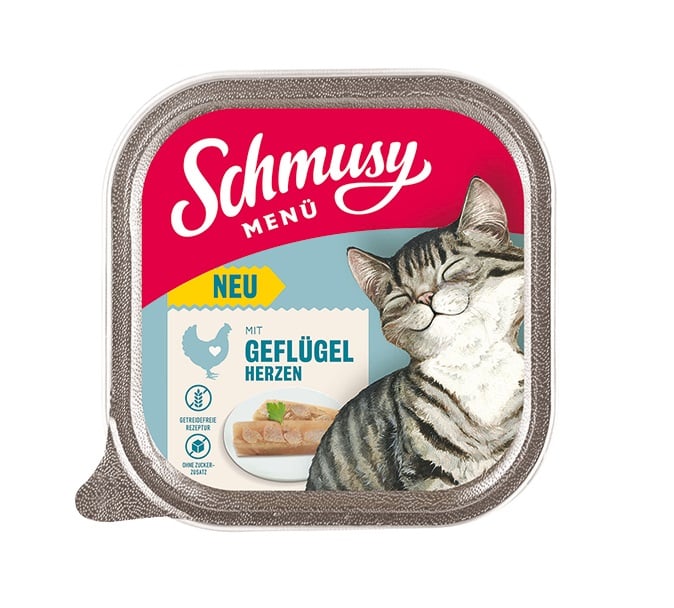 SSchmusy Menü je ideálnym denným krmivom pre malé mačky. So všetkými potrebnými vitamínmi a minerálmi je to dokonalé kompletné krmivo na každý deň. Toto krmivo sa pripravuje z kuracieho, hovädzieho a králičieho mäsa. Obsahuje dostatok taurínu a je bez obilnín a bez pridaného cukru.