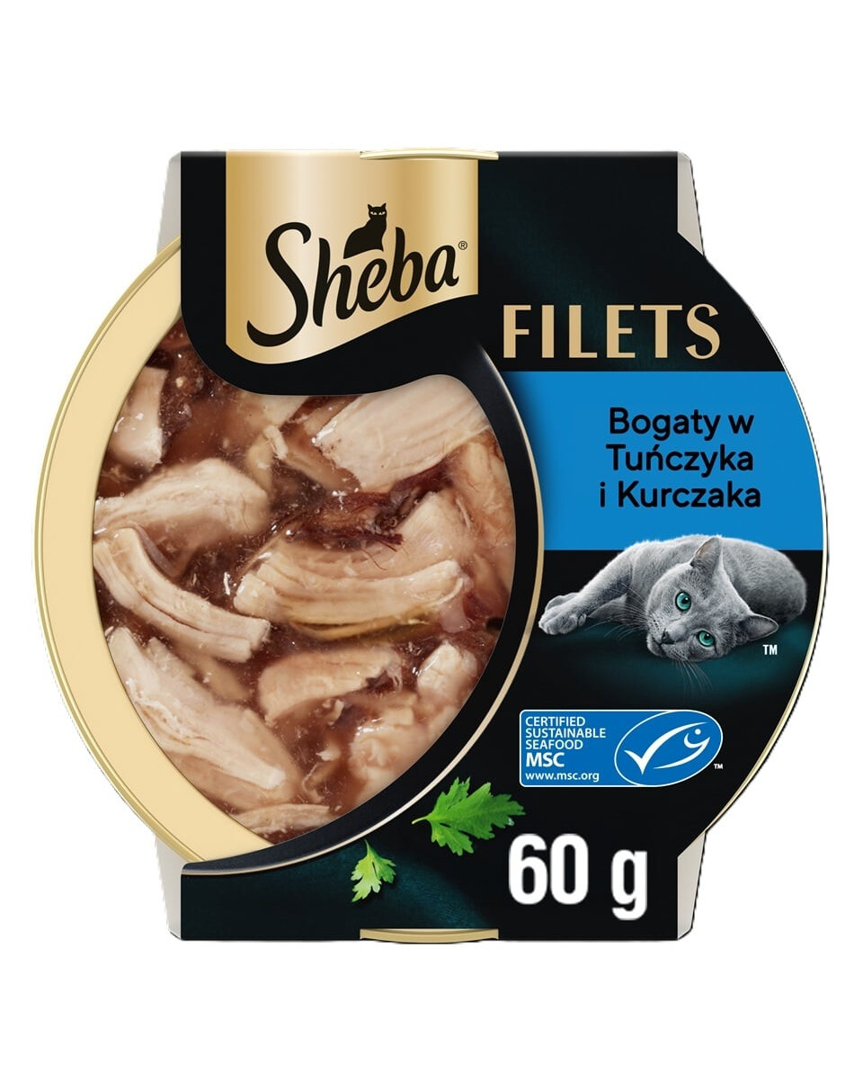 Zloženie starostlivo vybraných, krehkých filiet v lahodnej omáčke. Lákavá receptúra mokrého krmiva s textúrou, ktorú si vaša mačka zamiluje. K dispozícii v praktických, recyklovateľných miskách SHEBA 60g.