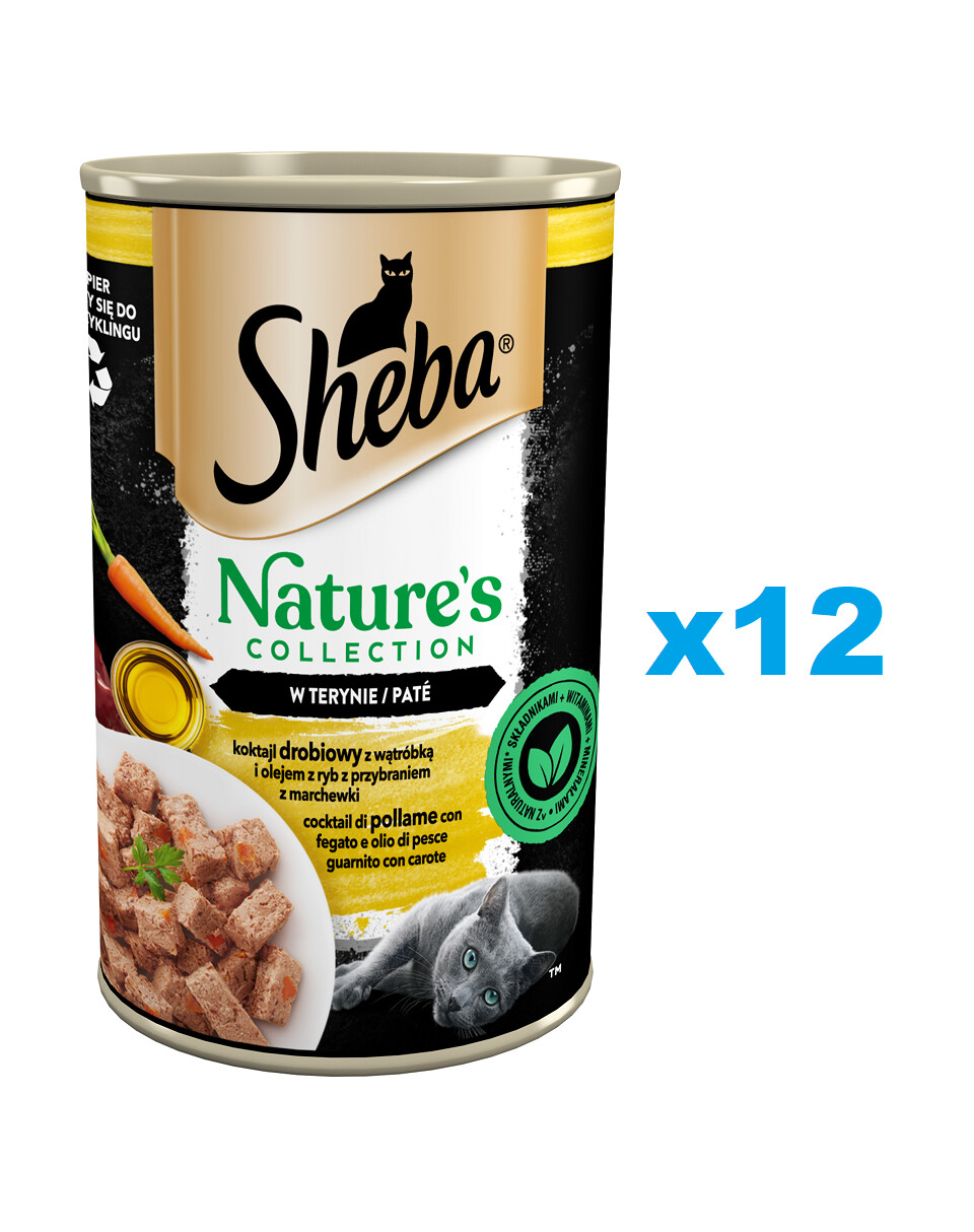 SHEBA Nature's Collection koktail z hydinovej pečene a rybieho oleja s mrkvovou prílohou je vynikajúci pokrm plný podmanivej chuti a vône vo vynikajúcej paštéte, ktorá poteší chuťové bunky aj tých najnáročnejších mačiek.