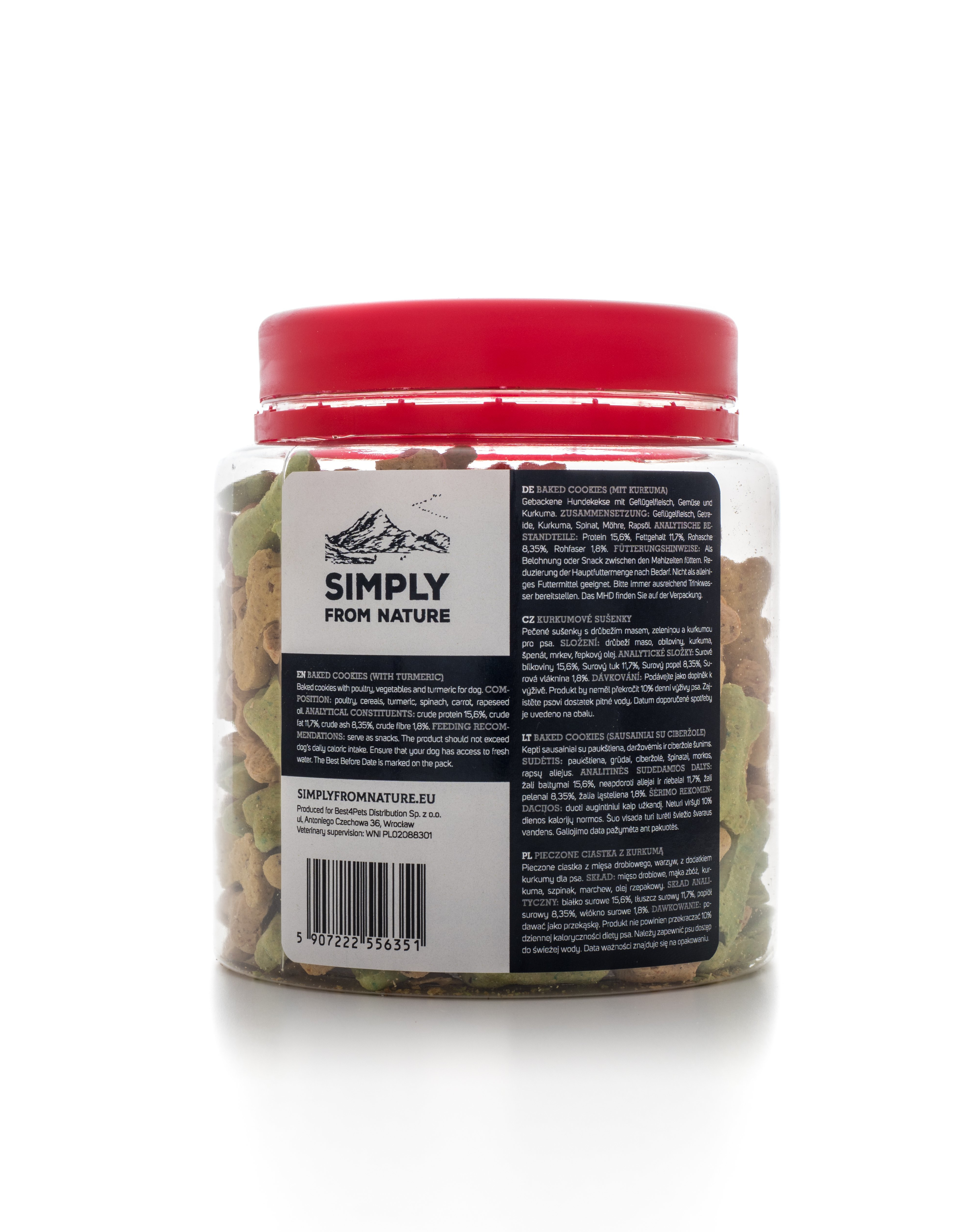 obsahujú mäso, zeleninu, kurkumu a múku, všetko ochutené repkovým olejom. Celok