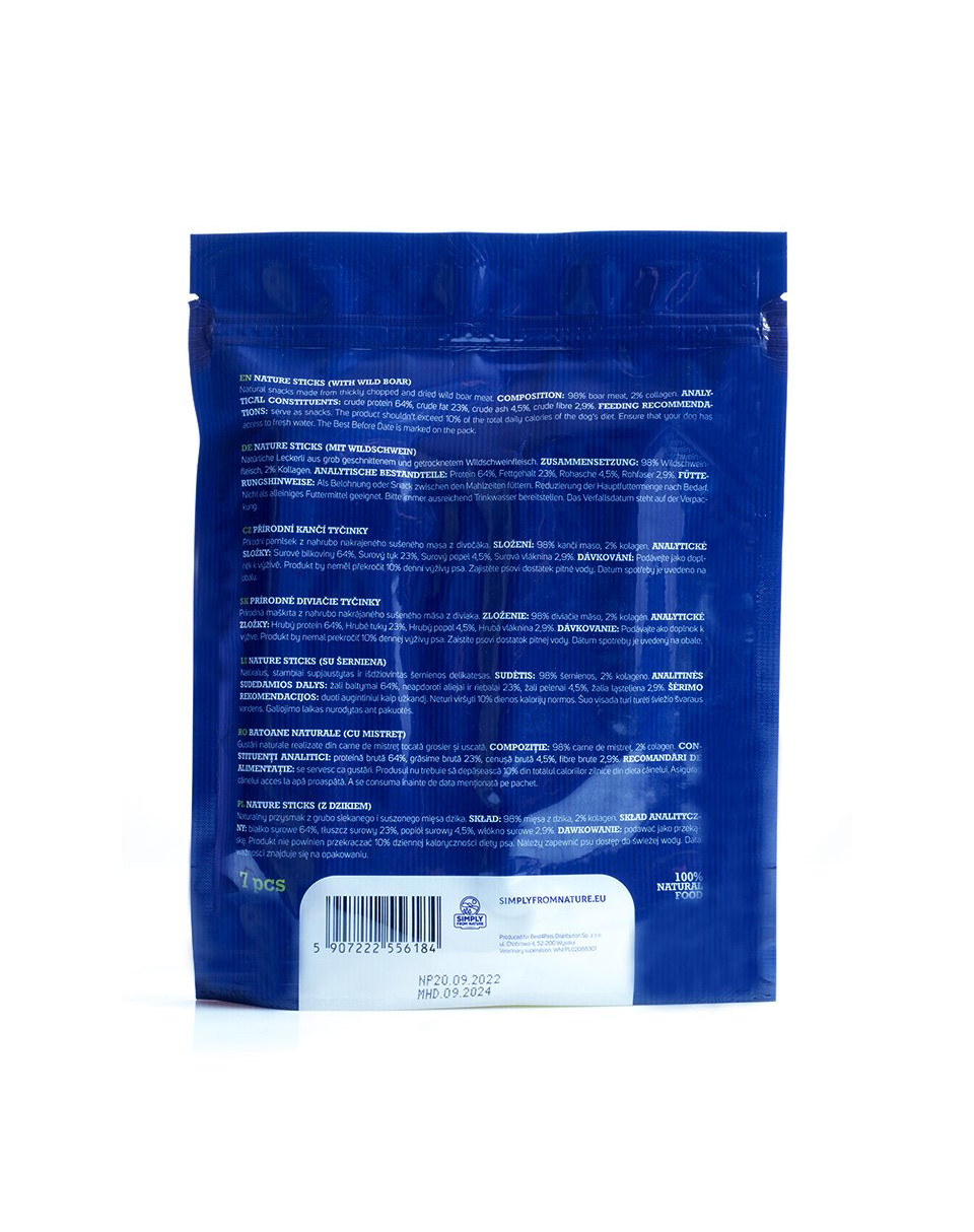 Zloženie: 98% diviačie mäso, 2% kolagén.