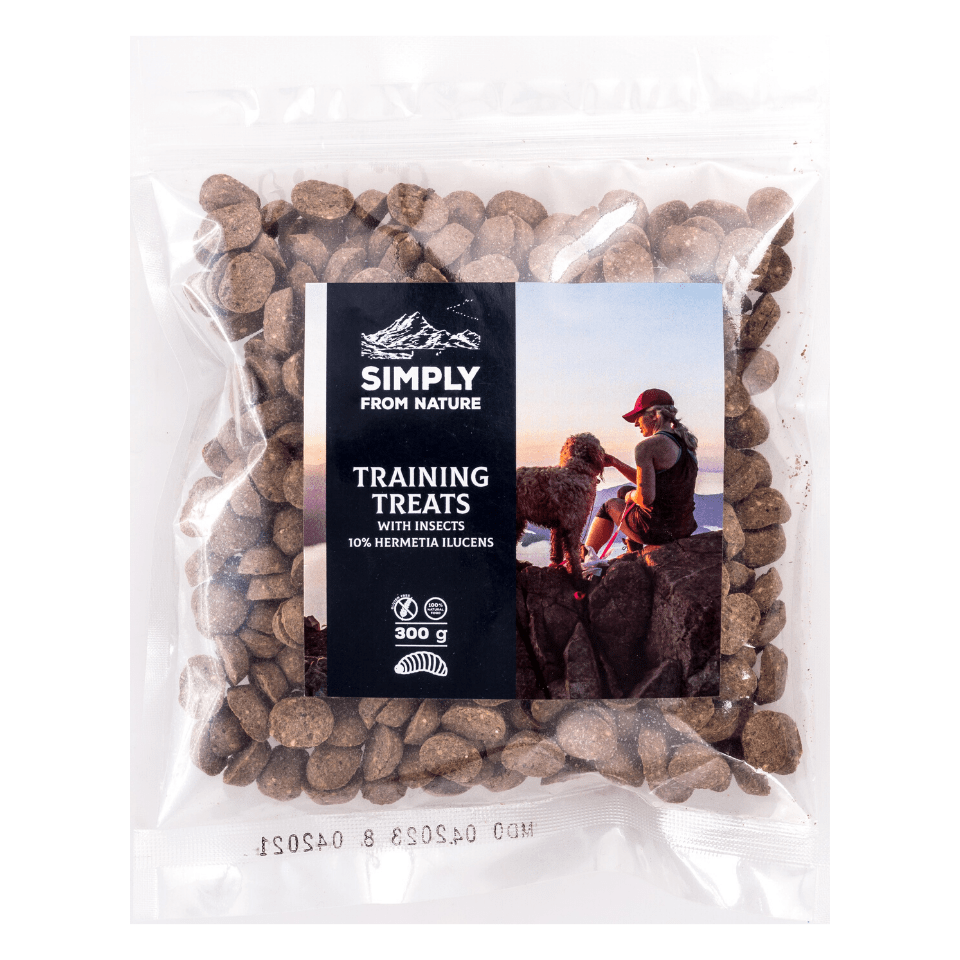 Na výrobu pochúťok bol vybraný špeciálny hmyz Hermetia Ilucens, ktorý sa vyznačuje najlepšie stráviteľným proteínom vysokej biologickej kvality, porovnateľne vyšším ako bielkoviny napríklad kuracieho mäsa. Hmyz dozrieva v špecializovaných farmách, kde sa po prezimovaní suší. Vďaka takýmto opatreniam je ich chov etický a ekologický. Hmyzí proteín je najstarším a najvýživnejším zdrojom bielkovín na svete. Hmyz poskytuje veľa cenných minerálov a vitamínov vrátane. zinok, meď, fosfor a vitamín B2 a všetky zaisťujú psovi krásnu srsť a zdravú pokožku, tiež posilňujú jeho imunitu. Nenasýtené mastné kyseliny podporujú nervový systém a srdce.
