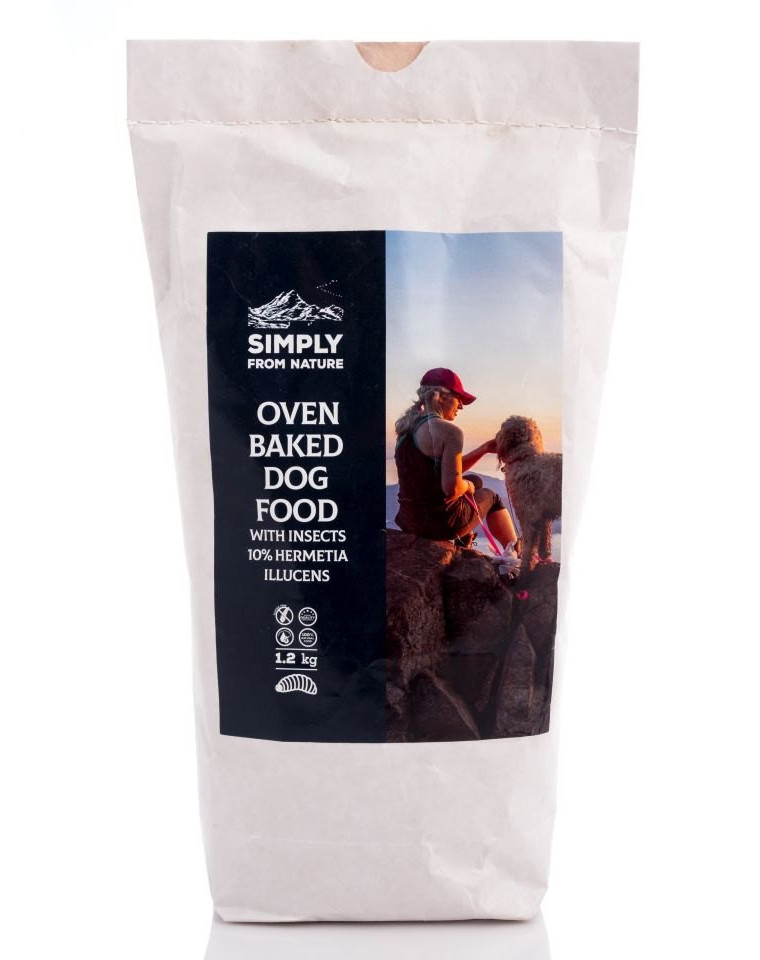 Prírodné pečené krmivo pre psov bez obilnín a lepku s hmyzími bielkovinami, topinamburmi, zemiakmi a bylinkami.