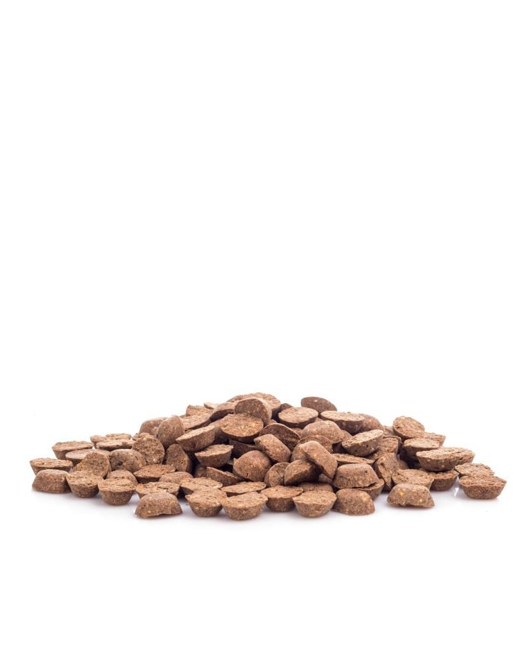 Zloženie: 22% zemiakov, 20% mrkvy, 10% hmyzieho proteínu (Hermetia Illucens), 9% vody, 8% sušenej marhule, 8% červenej repy, 5% ľanového semena, 5% bodliaka, 3% repkového oleja, 2,5% bylín a korenia, 2% melasa, 2% plantain, 2% tekvicové semená, 0,5% pivovarských kvasníc, 1% kolagénové črevo (môže obsahovať stopy hovädzieho mäsa)