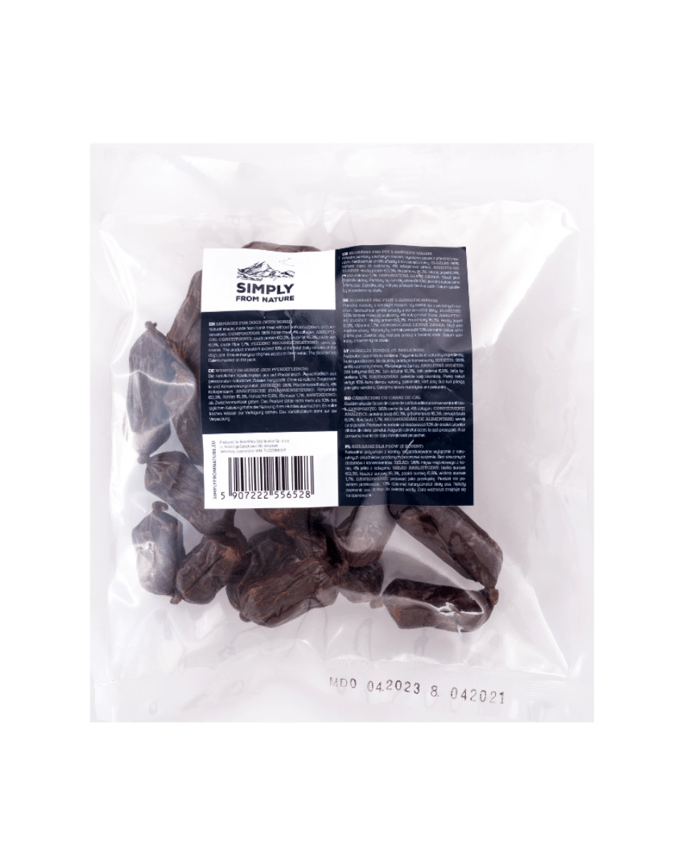 Tyčinky prešli iba sušením, vďaka čomu sú jemné a aromatické. Sušenie vám umožňuje zachovať maximálny obsah výživných látok v produkte vrátane tých najdôležitejších - bielkovín a tukov. Bez pridaných konzervantov, farbív, príchutí, pochúťky sú ľahko stráviteľné a vhodné aj pre alergikov. Čisté mäso dokonale povzbudzuje psa, aby to skúsil, nie sú potrebné žiadne plnidlá - zrná alebo cukry, ktoré sú pre psa škodlivé.