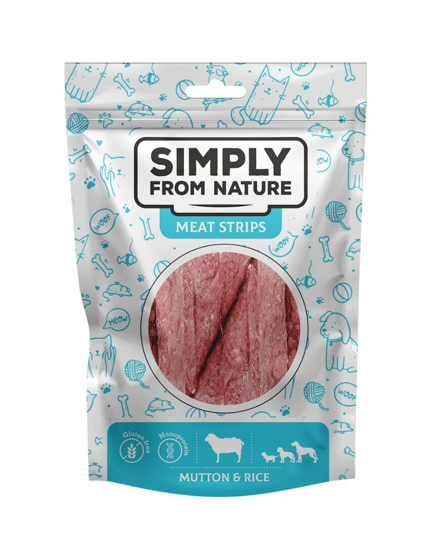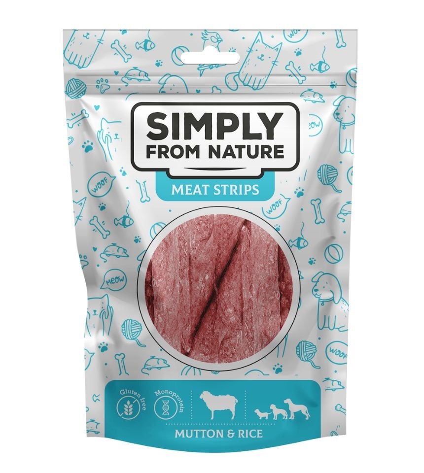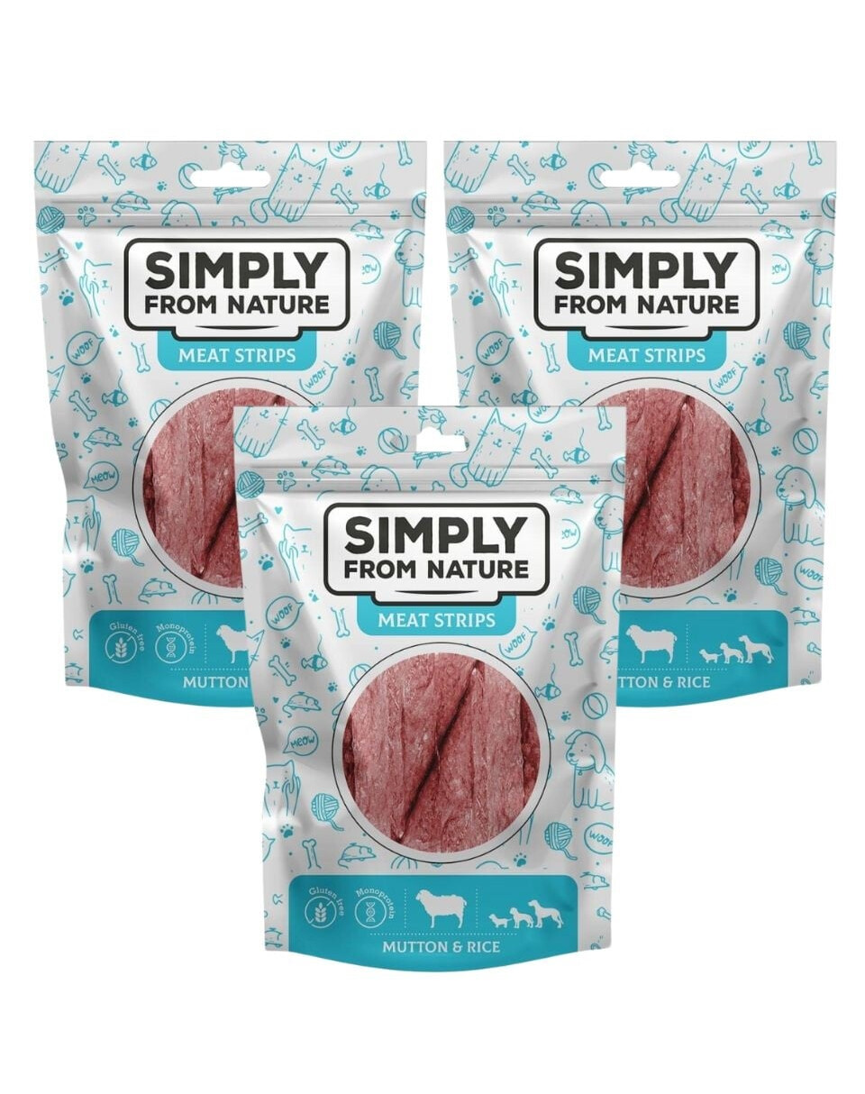 Psie maškrty – stripsy s baraninou a ryžou. Ideálne na dlhšie žuvanie. Ľahko sa delí na menšie kúsky.