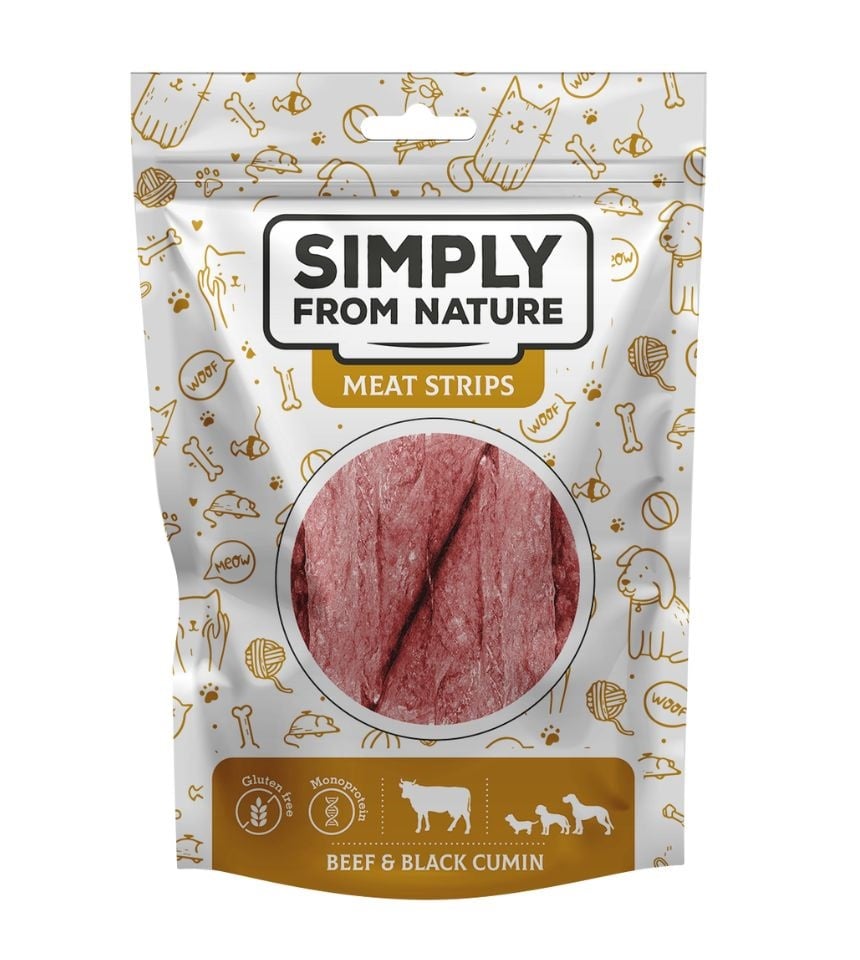 Psie maškrty – stripsy s hovädzím mäsom a černuchou. Ideálne na dlhšie žuvanie. Ľahko sa delí na menšie kúsky.