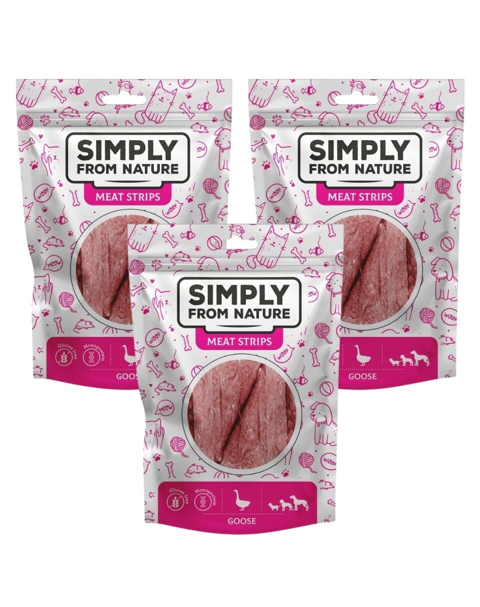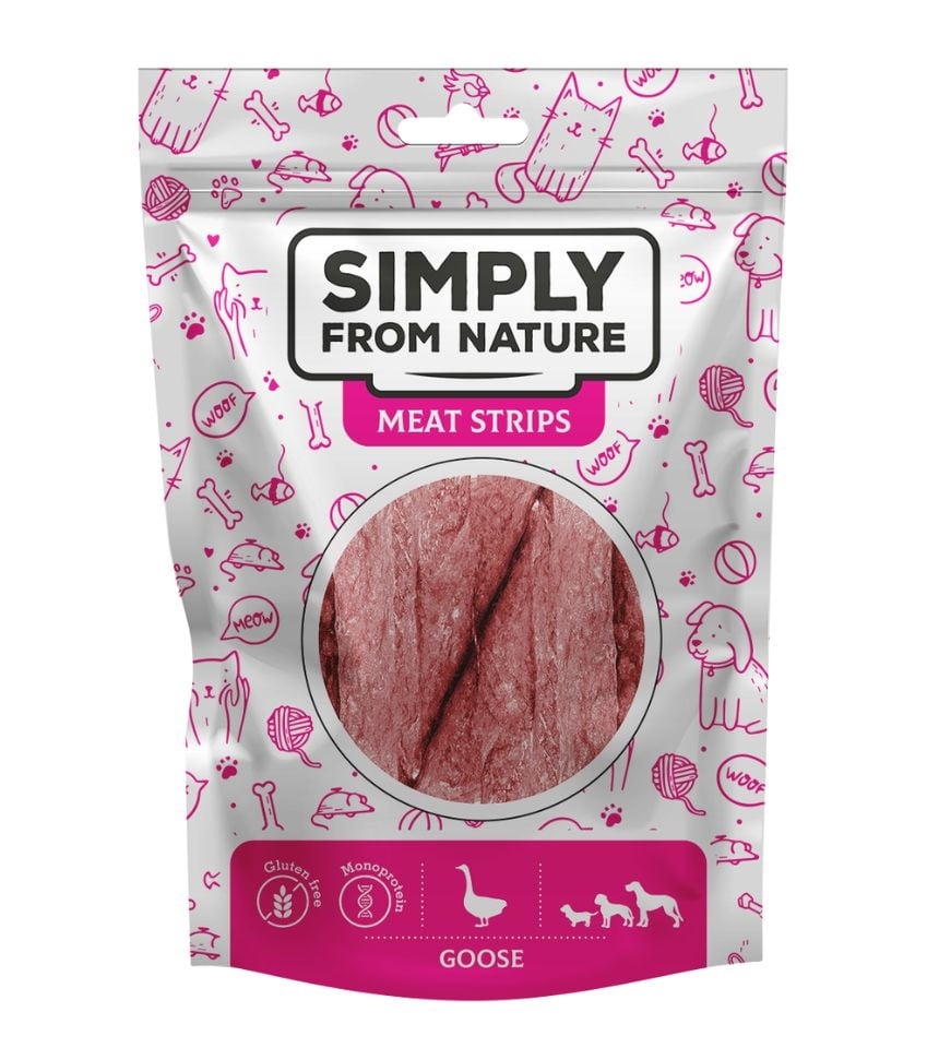 Psie maškrty – stripsy s husacím mäsom. Ideálne na dlhšie žuvanie. Ľahko sa delí na menšie kúsky.