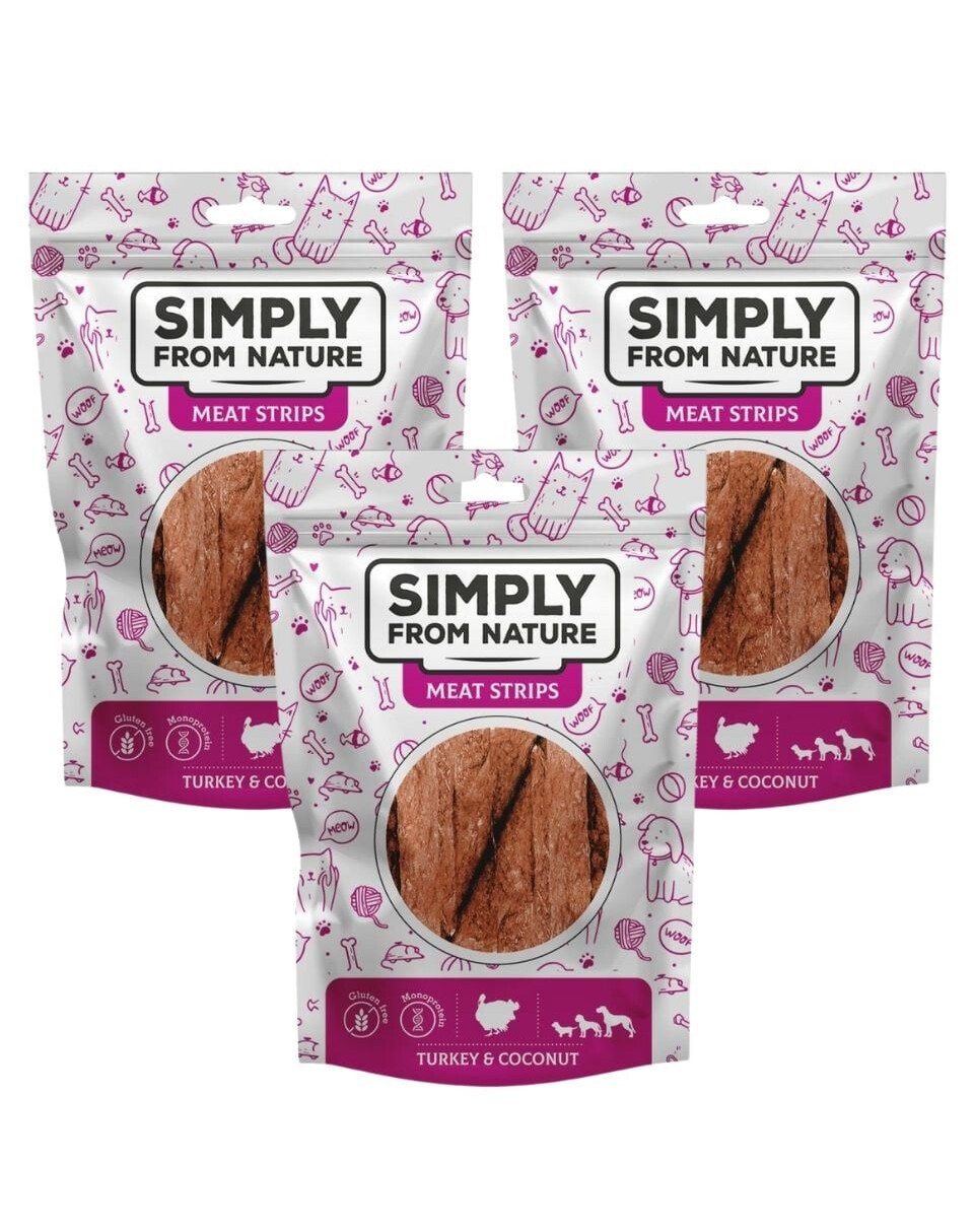 Psie maškrty – stripsy s morčacím mäsom a kokosom. Ideálne na dlhšie žuvanie. Ľahko sa delí na menšie kúsky.