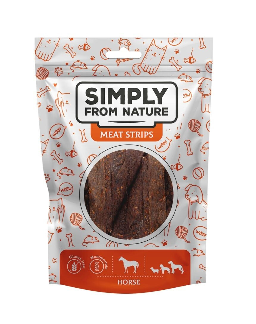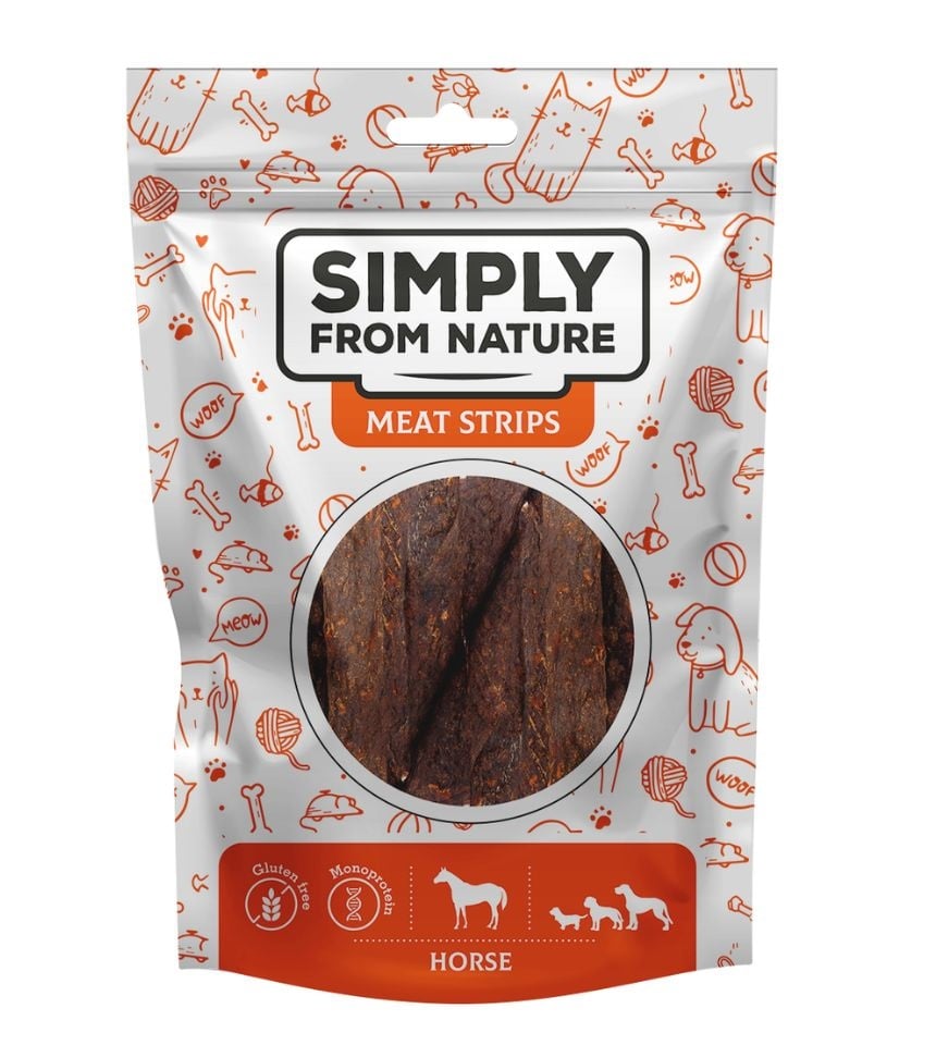 Psie maškrty – stripsy s konským mäsom. Ideálne na dlhšie žuvanie. Ľahko sa delí na menšie kúsky.