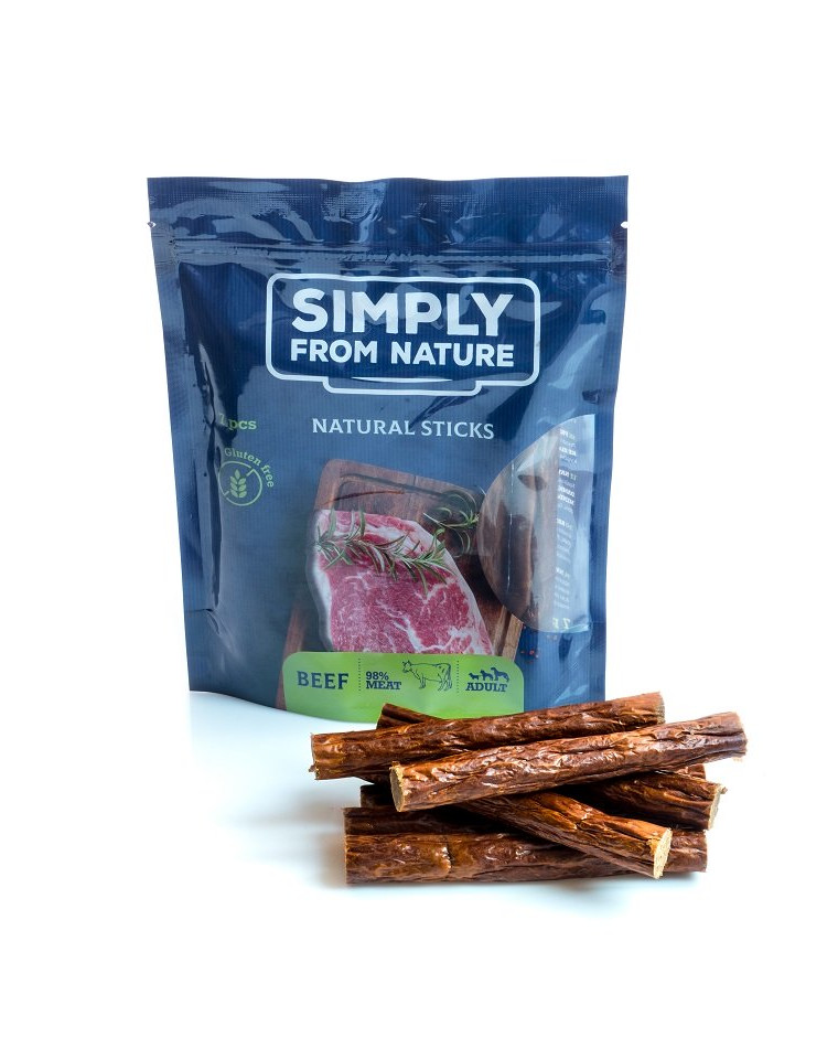 Pochúťky v podobe jemných tyčiniek pre psov. Vyrobené z 98%
