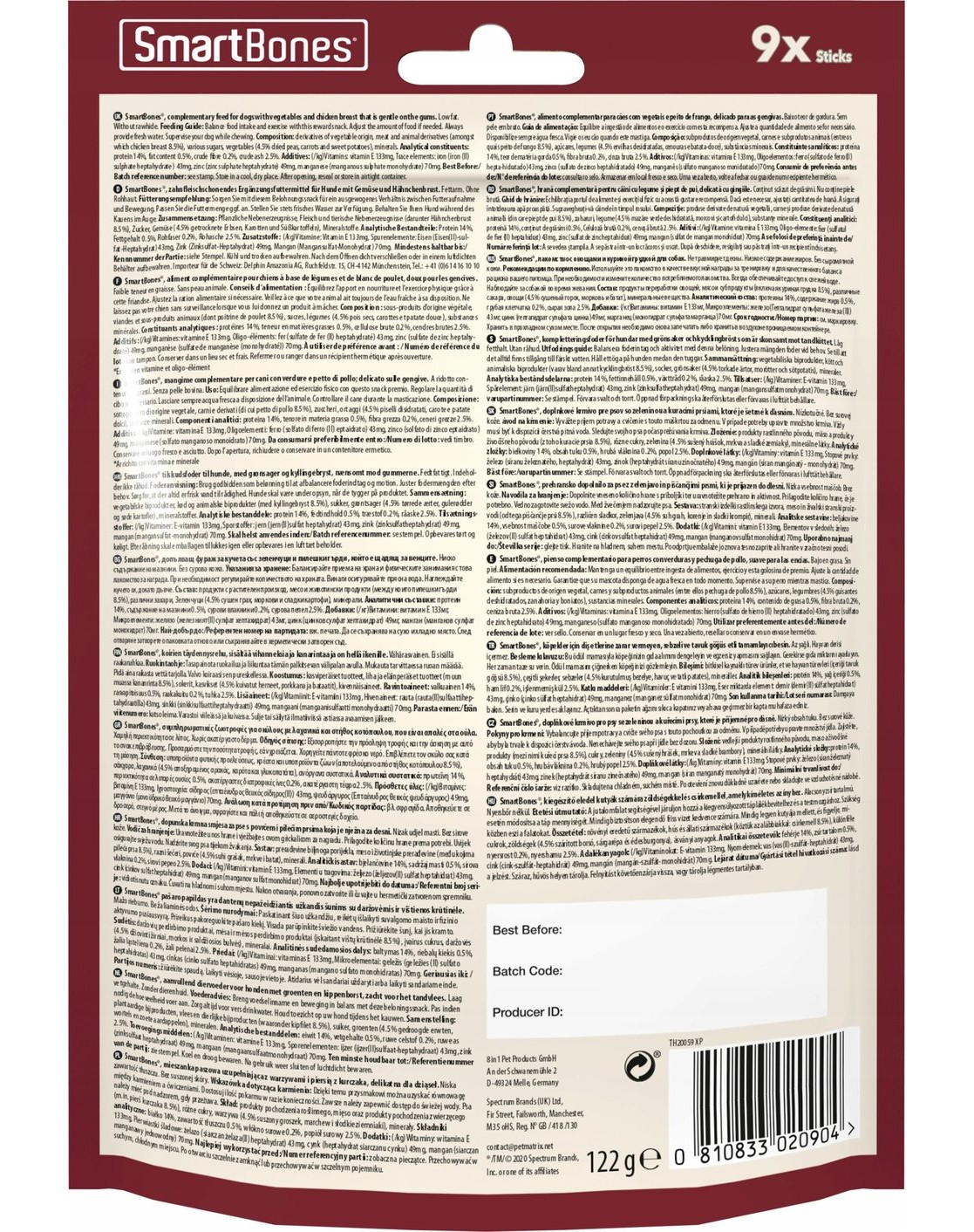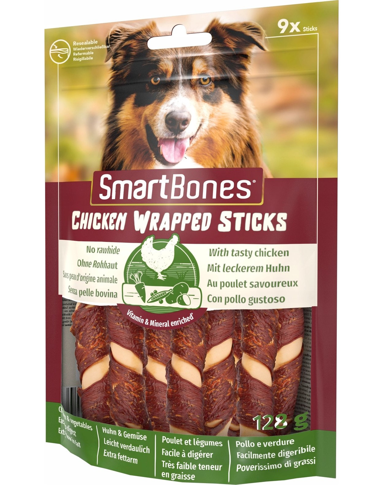 zabalené v krabičke SmartBones® sú lahodné žuvacie tyčinky bez kože (bez