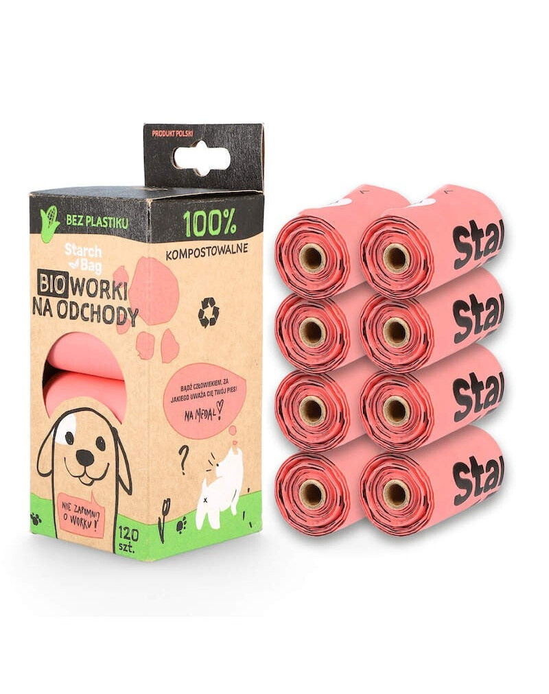 Kompostovateľné BIO vrecia na výkaly 8 roliek x 15 ks, farba ružová