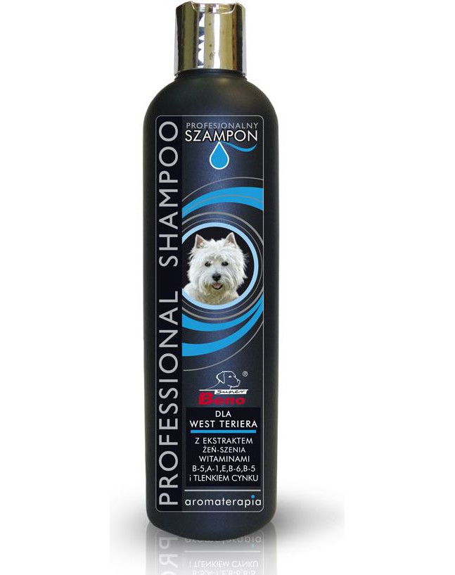 Super Beno Professional šampón pre plemeno West Terrier založený na jemných umývacích látkach. Bohatý na prírodné živiny rastlinného pôvodu: výťažky z harmančeka, ženšenu a prasličky, a glycerínu. Obohatený hydrolyzátom keratínu, ktorý hlboko regeneruje srsť psa, obnovuje jeho štruktúru, chlpy zjemňuje a dodáva lesk. Pridanie harmančeka zaistí rozjasnenie sfarbenie, čím sa srsť psa dokonale zafarbí. Obsahuje prírodné macadamia a bavlnené oleje ďalej. pH neutrálne pre zvieratá.