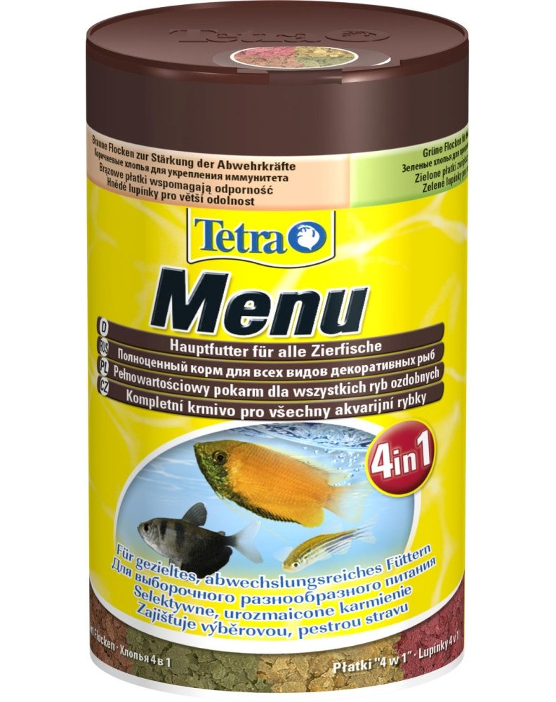 Štyri druhy vločkového krmiva v štyroch samostatných priehradkách, vďaka ktorým je kŕmenie rýb ešte zábavnejšie.