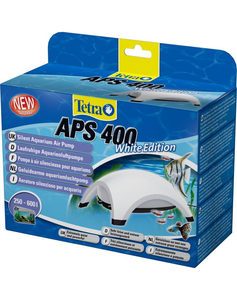 Pompa napowietrzająca do akwariów, zwiększa przepływ wody w celu dostarczenia tlenu. Pompa TETRA APS charakteryzuje się cichą pracą dzięki specjalnie zaprojektowanym komorom i gumowym nóżkom, które eliminują hałas. yposażona jest w zawór powietrzny Silafex, który reguluje przepływ powietrza. Pompa posiada bardzo mocną membranę, która gwarantuje równomierne rozwijanie wydajności.