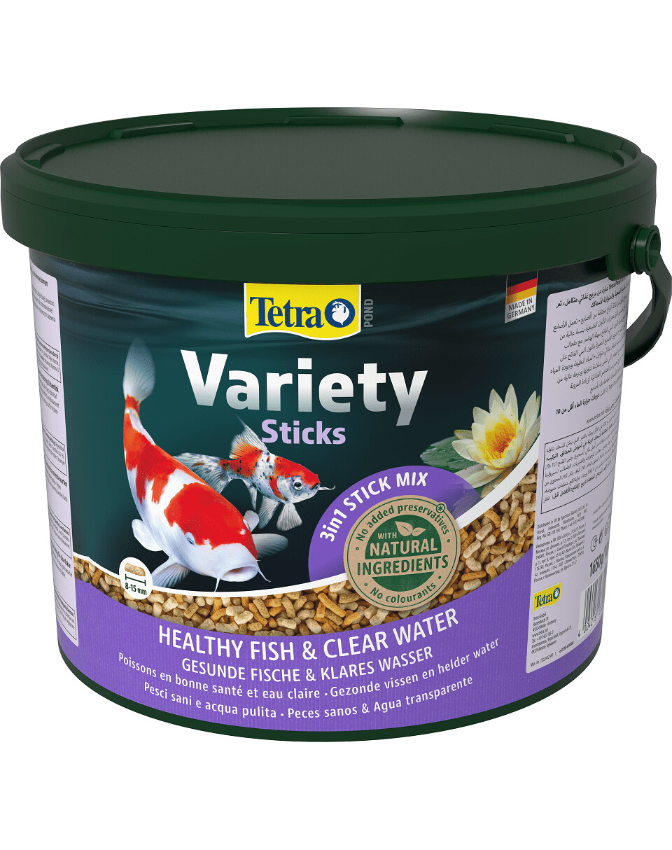 Zmes troch druhov krmiva v tyčinkách, ktorá poskytuje výživnú a pestrú stravu pre ryby v jazierkach a záhradných jazierkach. Krmivo obsahuje všetky potrebné živiny, vitamíny a stopové prvky. Zvýrazňuje intenzitu prirodzeného sfarbenia vďaka kvalitným prírodným látkam, je bohaté na vlákninu a ľahko stráviteľné. Stabilizovaný vitamín C podporuje odolnosť voči chorobám, dobre sa vstrebáva a neznečisťuje vodu