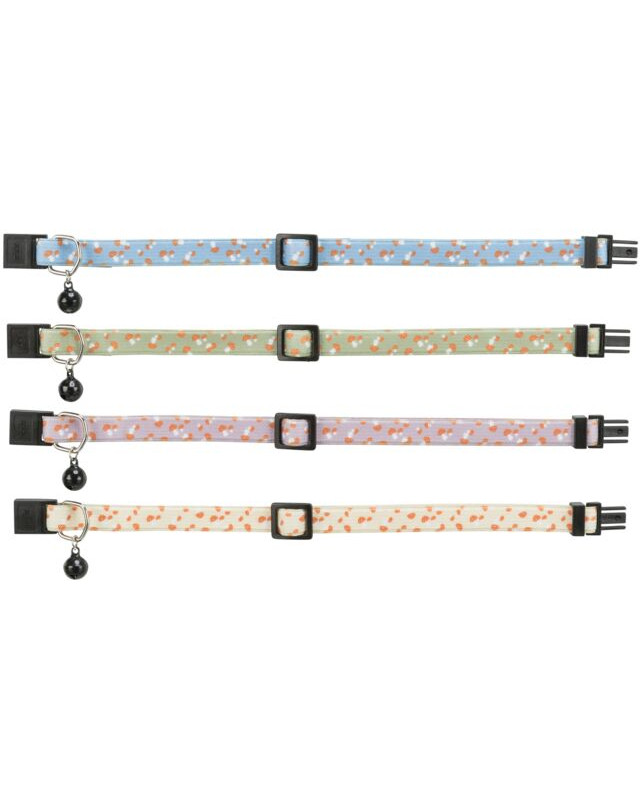 Obojok pre mačky s krásnym vzorom hríbov v rôznych farbách, so zvončekom a zapínaním na patent, ktorý sa v prípade potreby ľahko otvára.