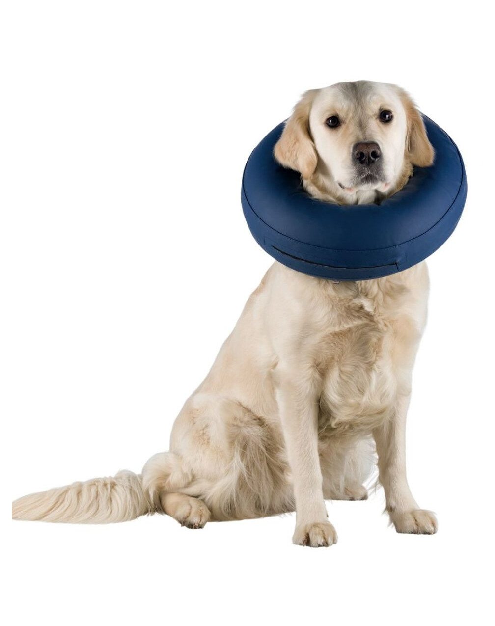 Pohodlný nafukovací ochranný golier. Chráni hlavu, hruď a chrbát, zabraňuje lízaniu a hryzeniu. Chráni psa pred nárazmi do stien, predmetov alebo schodov, pričom neobmedzuje zrak a sluch. Vyrobený z mäkkého a pružného materiálu, rzeby zapínanie umožňuje rýchle a presné nasadenie. Pútka cez obojok zabraňujú skĺznutiu. Nebráni pitiu, čuchaniu ani hre.