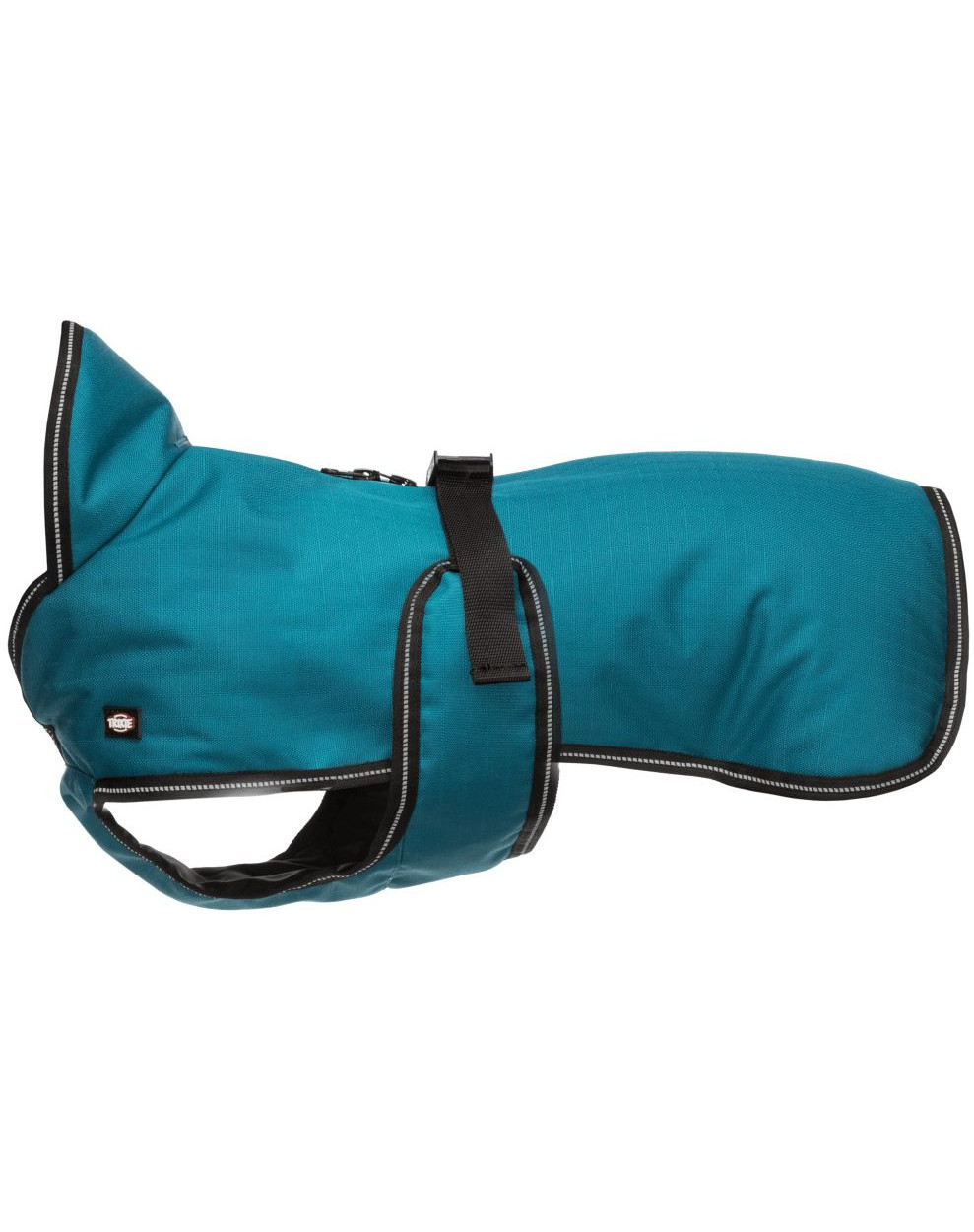 Kabát pre psy určený na mierne chladné dni. Je vodotesný a vetruvzdorný, s podšívkou vo vnútri. Na vrchu má sponu, ktorá vám umožní nastavenie. Reflexný prúžok zvyšuje bezpečnosť pri chôdzi. Môže byť pripevnený k postroju pomocou zipsu.