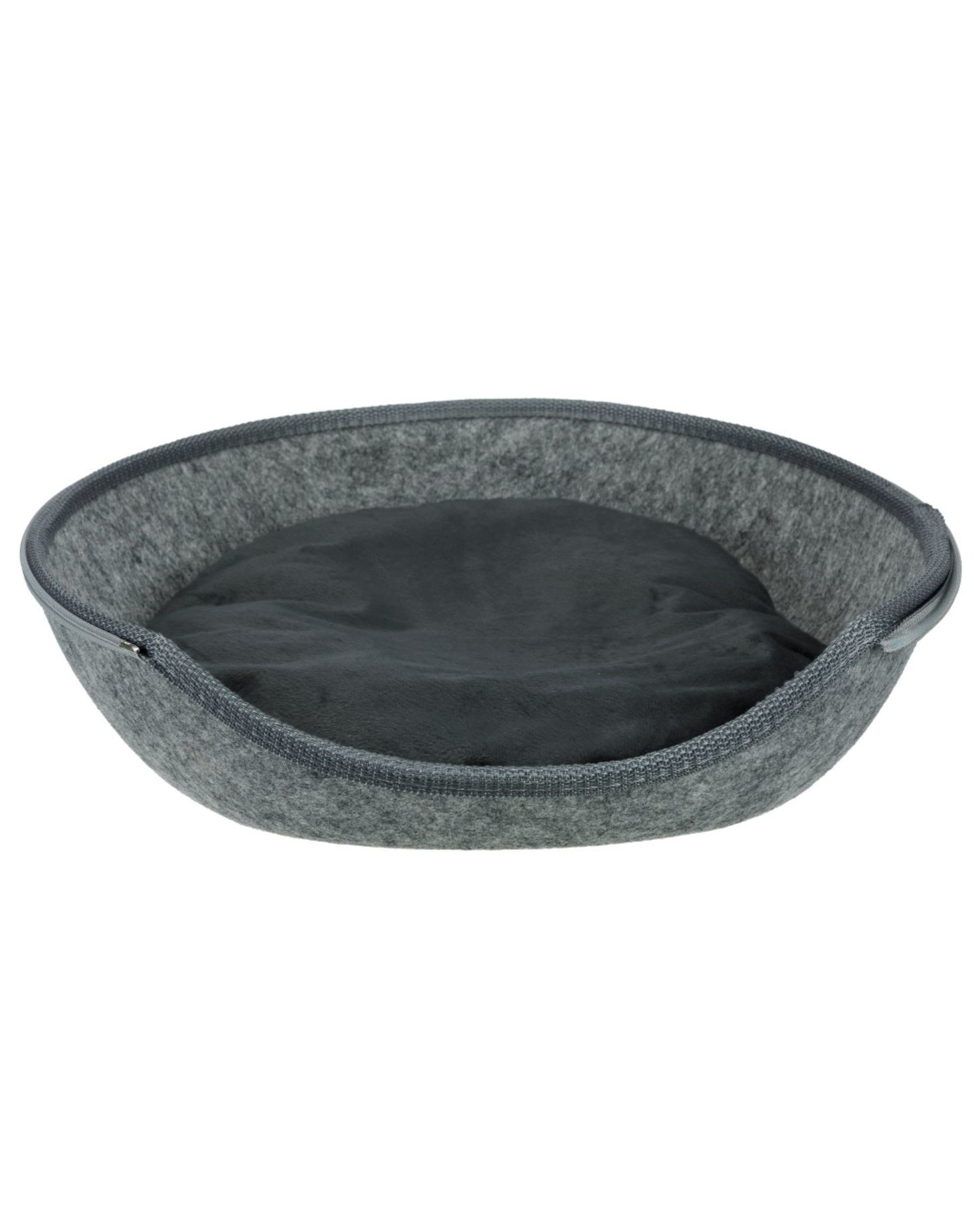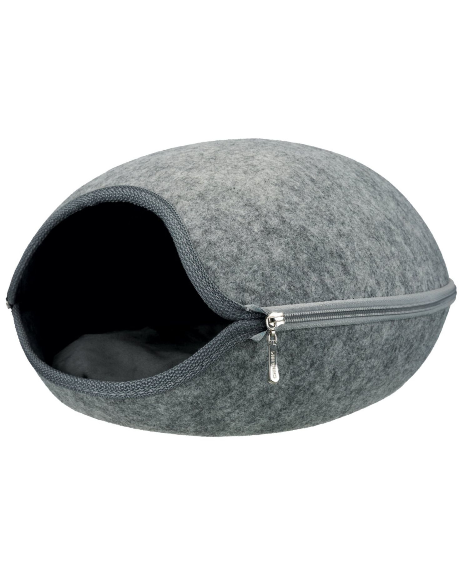 Plstené lôžko odolné voči nečistotám. Dá sa rozopnúť a vytvoriť tak otvorené alebo zatvorené lôžko. Vnútri vankúš s plyšovým poťahom a polyesterovou výplňou, ktorú možno prať.