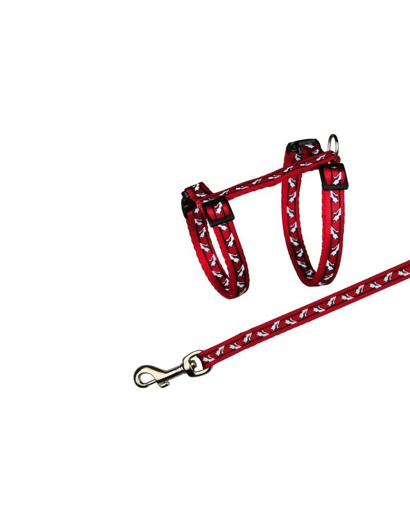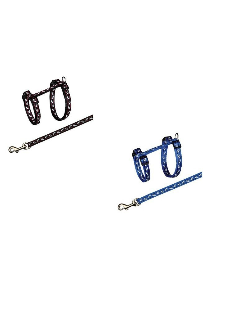 Zestaw składa się z szelek oraz smyczy z nylonu z gustownym wzorem w kotki.