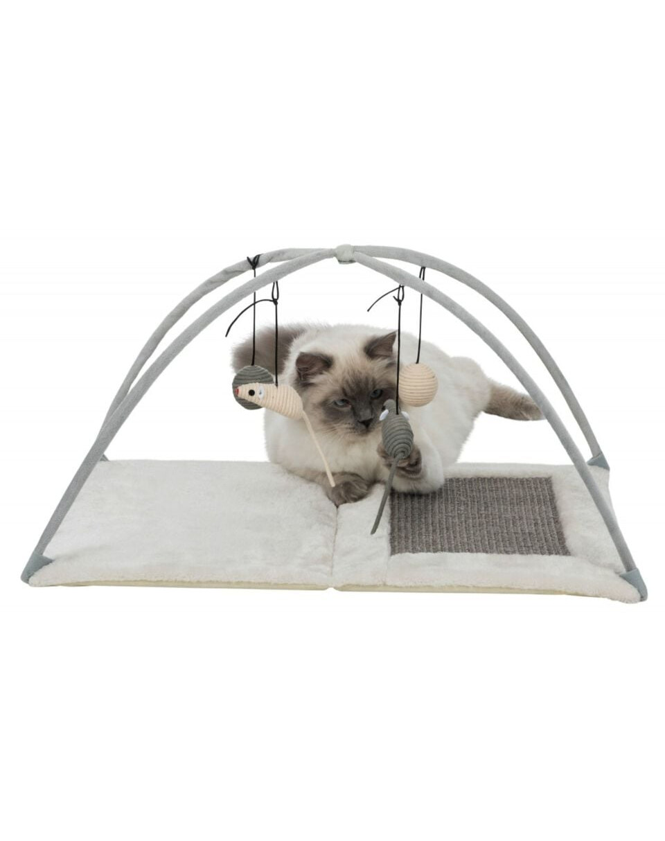 Plyšová podložka s drpakom a hračkami. Podložka sa dá zložiť.