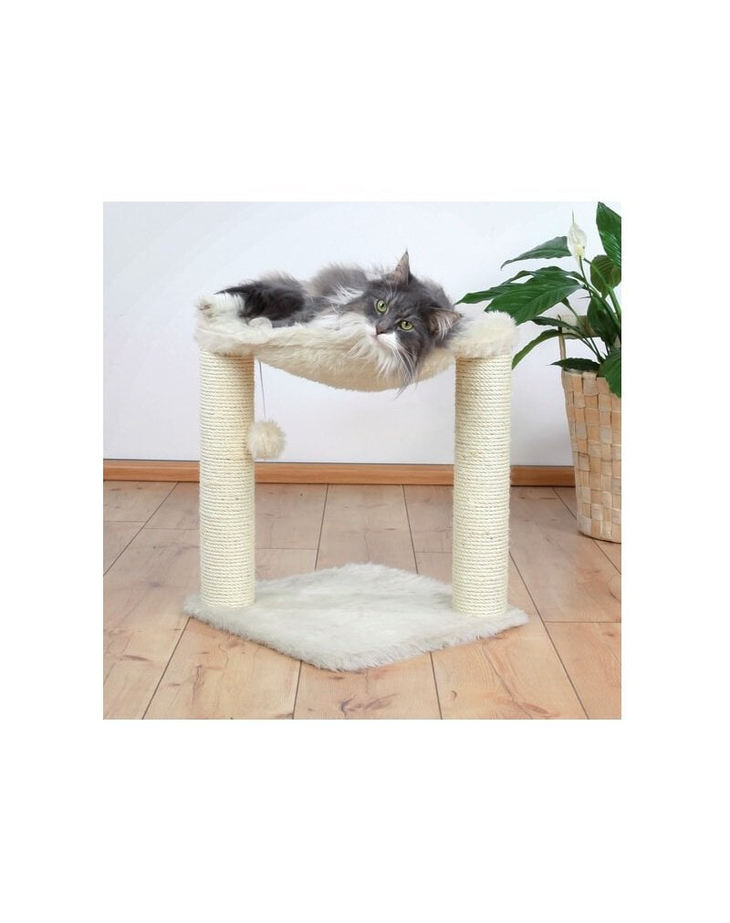 Funkčné a útulné škrabadlo, ideálne pre mačky všetkých vekových kategórií. Vybavené dvoma sisalovými stĺpikmi (9 x 43 cm) na škrabanie, nadýchaným pelechom (53 x 40 cm) hore a hračkou na gumičke na povzbudenie aktivity. Celé je potiahnuté mäkkým, huňatým plyšom pre pohodlie a estetický vzhľad.