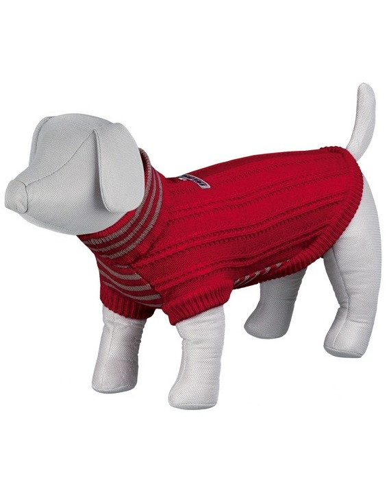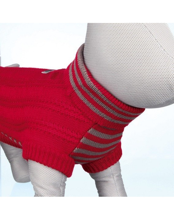 Sweterek dla psa z półgolfem. Posiada wycięcie na zapięcie smyczy. Nadaje się na umiarkowanie zimne dni. Wykonany z syntetycznej wełny, można go prać ręcznie w 30 stopniach.