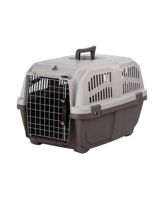 Transporter z plastiku o wymiarach 40x39x60cm dla psów małych i średnich ras lub kotów ( waga do 24 kg). Transporter waży 2 kg i jest akceptowany przez większość linii lotniczych. Metalowe drzwiczki zamykane są na zatrzask. Otwory zapewniają właściwą wentylację.