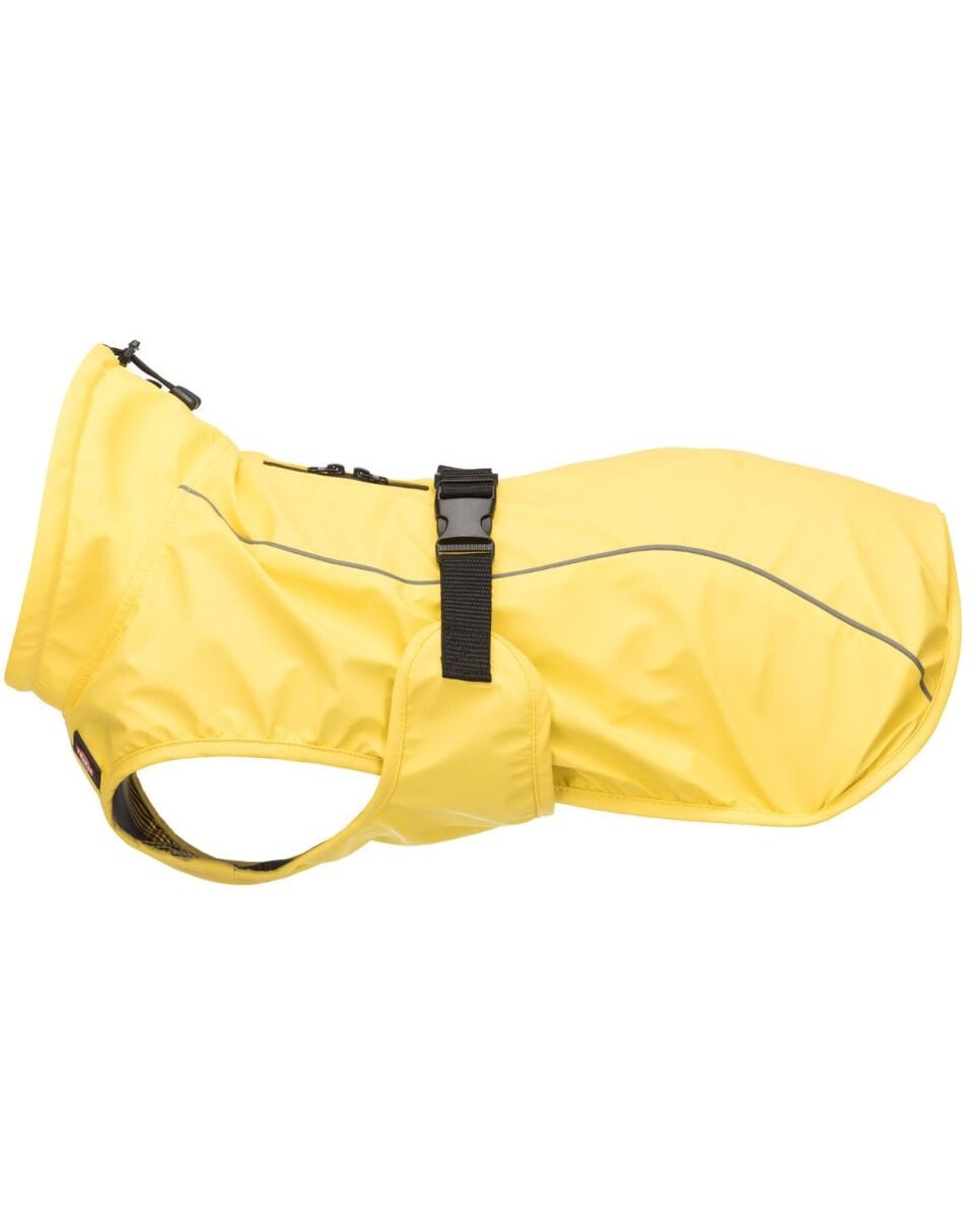 Pláštenka pre psov Vimy je dokonalou ochranou pred dažďom a vetrom. Táto pláštenka je vyrobená z odolného polyuretánu a polyesteru a má dva vodotesné zipsy na jednoduché pripojenie k obojku alebo postroju. Reflexné prvky zaisťujú bezpečnosť pri nočných prechádzkach. Vďaka nohaviciam na obojku, nastaviteľnému brušnému popruhu a pútkam na labky sa kabát dokonale prispôsobí tvaru tela vášho psa. Vďaka ľahko udržiavateľnej podšívke sa navyše ľahko udržiava v čistote. Udržujte svojho psa v pohodlí a štýle s kabátom Vimy.