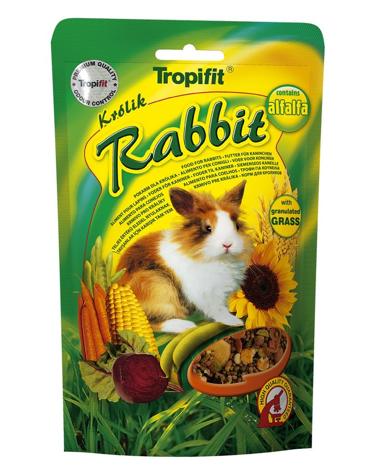 Kompletné krmivo pre králiky chované ako spoločenské zvieratá s prídavkom svätojánskeho chleba a granulovanej lucerny bohatej na bielkoviny. Základnou zložkou krmiva Rabbit sú obilné a lucernové granule získané extrúziou, čím sa zvyšuje stráviteľnosť a vstrebávanie živín obsiahnutých v obilninách a lucerne. Navyše extrúzia eliminuje baktérie a plesne prítomné v prírodných surovinách. Frukto-oligosacharidy (FOS) obsiahnuté v potravinách priaznivo ovplyvňujú tráviaci proces a črevnú bakteriálnu flóru. Veľkosť a tvar granúl umožňuje zvieratám obrusovať zuby a udržiavať ústnu hygienu. Bohatosť živín obsiahnutých v krmive pre králiky a odvodených z prírodných zdrojov vitamínov, mikro- a makroprvkov poskytuje zajačikom výbornú kondíciu a lesklú a príjemnú srsť na dotyk.