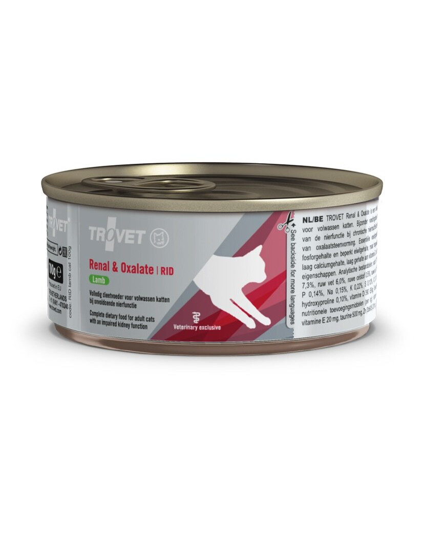 Diétne krmivo v konzerve s jahňacím mäsom pre dospelé mačky s renálnou insuficienciou / oxalátovými a cystínovými kameňmi.