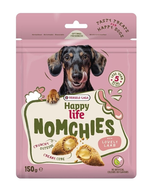 Happy Life NOMCHIES s MILOVANÝM JAHŇACINOU je chrumkavá pochúťka pre psa s krémovou náplňou.