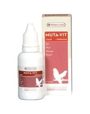 Muta-Vit to mieszanka witamin i aminokwasów, wzbogacona metioniną i cysteiną. Produkt jest idealny na okres pierzenia. W tym okresie rośnie zapotrzebowanie ptaków na białko, metioninę i cysteinę. Muta-Vit gwarantuje mocne, zdrowe i piękne pióra, pomaga w leczeniu ptaków skubiących się z powodu zaburzeń przemiany materii, należy stosować go również po kuracji antybiotykami i przy źle funkcjonującej wątrobie.