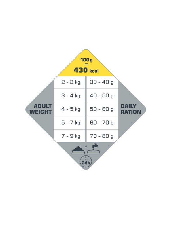- Jedinečná receptúra plne zodpovedajúca nutričným potrebám vašej mačky: krmivo bez obilnín s nízkym obsahom sacharidov a 90 % živočíšnych bielkovín.