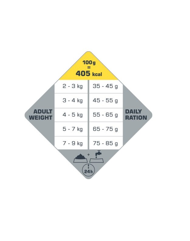 - Jedinečná receptúra plne zodpovedá nutričným potrebám vašej dospelej mačky: krmivo bez obilnín s nízkym obsahom sacharidov a s 87 % bielkovín živočíšneho pôvodu.