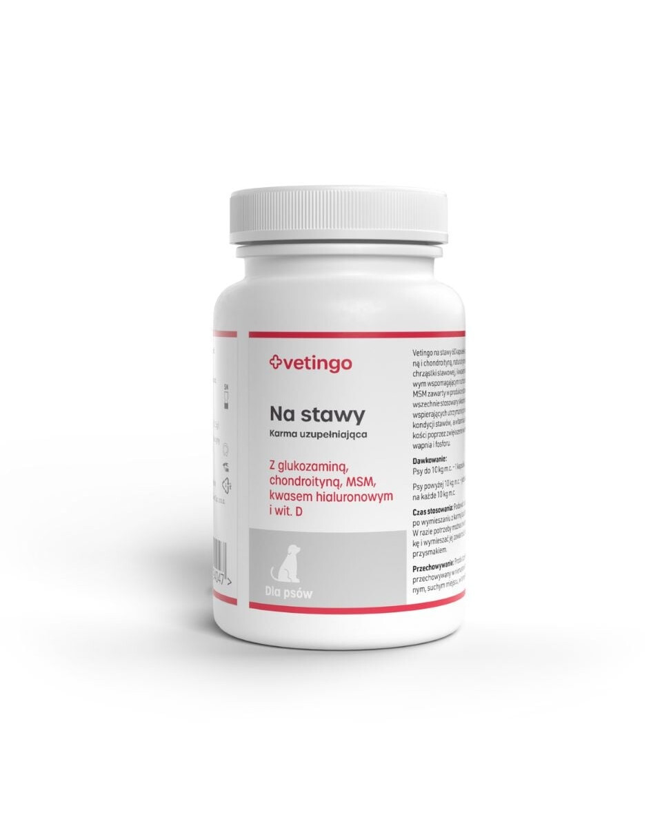 Vetingo na stavy 60 kapsúl s glukozamínom a chondroitínom, prírodnými zložkami chrupavky kĺbov, a kyselinou hyalurónovou podporujúcou pohyblivosť kĺbov. MSM obsiahnutý v produkte predstavuje bežne používanú zložku prípravkov podporujúcich udržanie správnej kondície kĺbov, a vitamín D posilňuje kosti zvýšením vstrebávania vápnika a fosforu.
