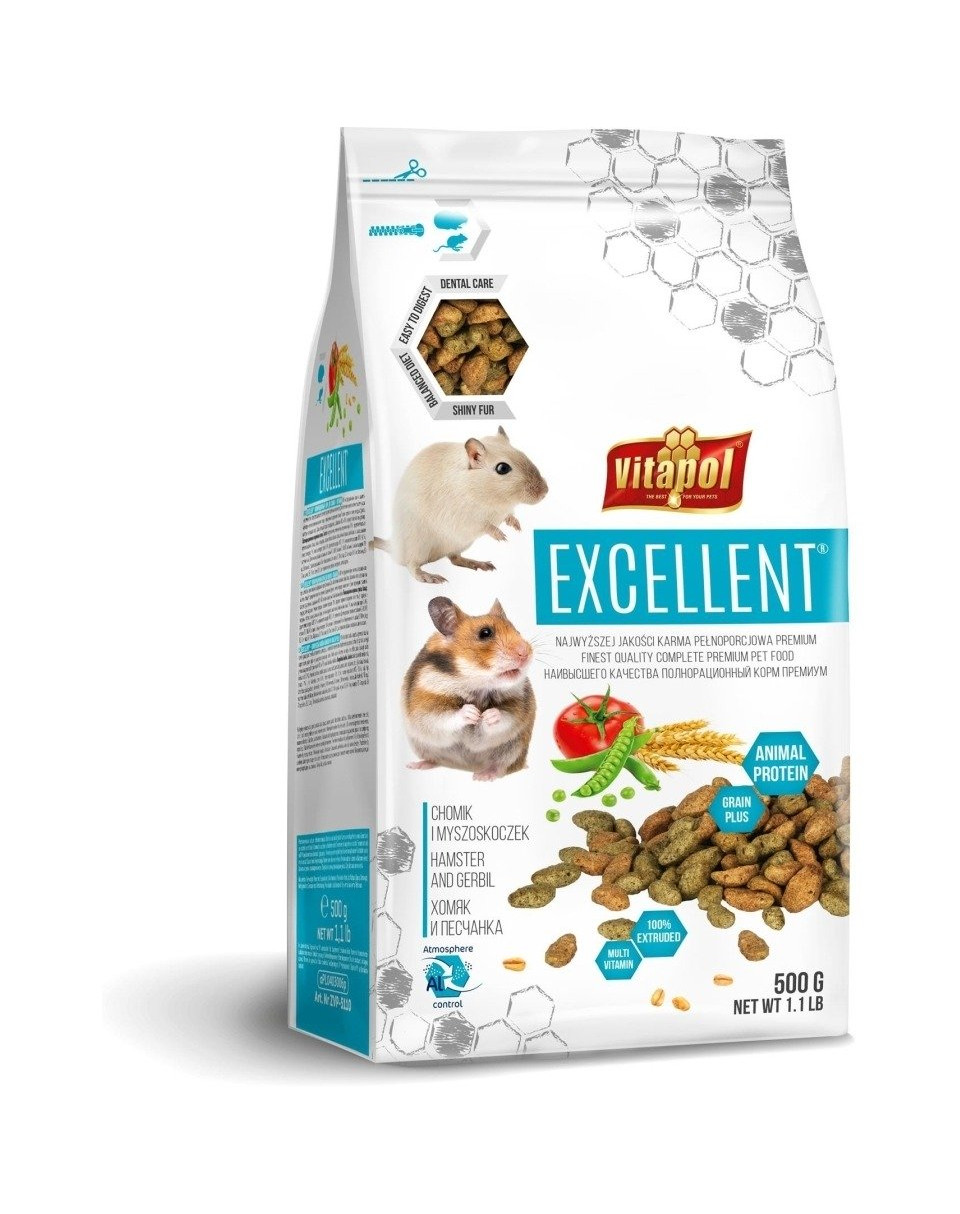Excellent je moderné, 100% extrudované, kompletné krmivo pre škrečky a pieskovce.