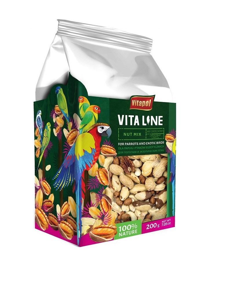 Oriešky sú pre papagáje jednou z najväčších maškŕt, po ktorej sa priam zbláznia. Pekanové orechy sú bohaté na bielkoviny a nenasýtené tuky, neobsahujú cholesterol a sú dobrým zdrojom živín, ako je vápnik, železo a horčík. Táto orechová zmes je tiež dobrým zdrojom kyseliny olejovej, mastnej kyseliny, ktorá môže pomôcť udržať telo vášho papagája zdravé. Obsahuje kešu orechy s vysokým obsahom draslíka a horčíka, ktoré okrem iného pomáhajú správnemu fungovaniu nervového systému.
